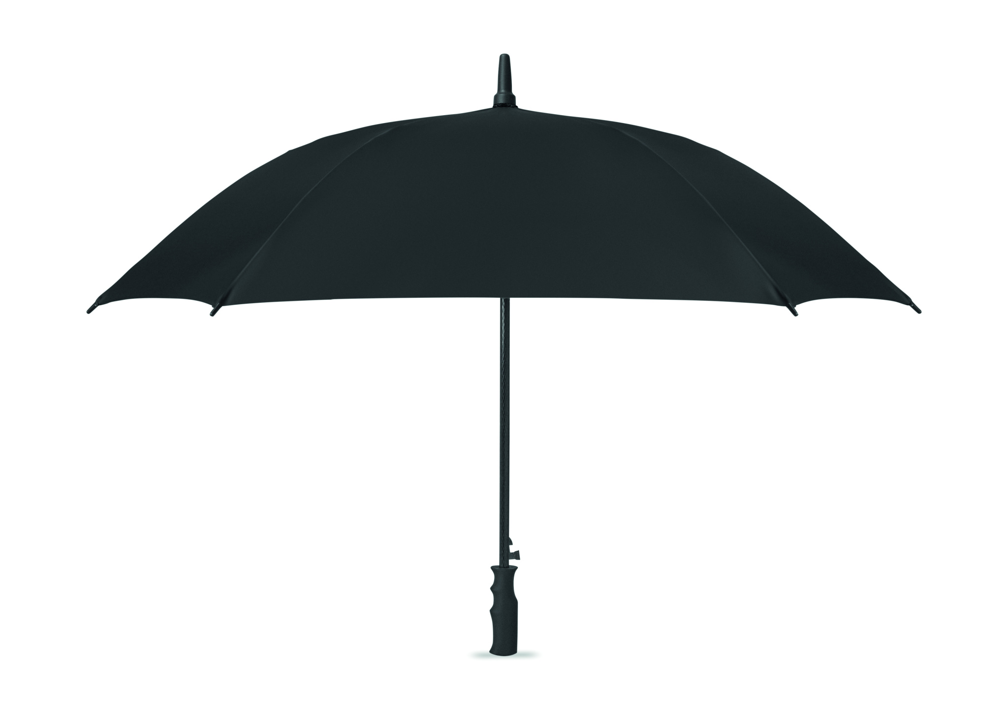 23-tuumainen tuulenpitävä, automaattisesti avautuva neliönmuotoinen sateenvarjo 190T pongee-polyesteriä. Täyslasikuituinen runko ja ruoteet sekä kumipintainen ABS-kahva.