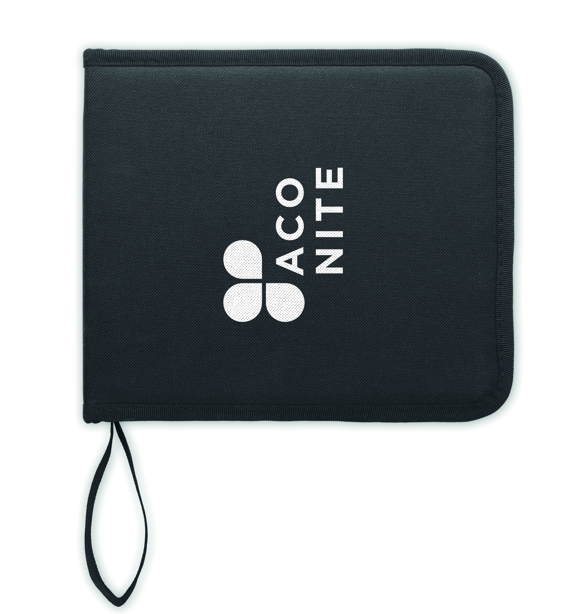 Ammattimainen 40-osainen piirustussetti. Sisältää: 14 lyijykynää, 12 värikynää, hiekkapaperin, useita hiilikyniä, grafiittikynän, kynänpidikkeen, teroittimen, pyyhekumin, siveltimen ja askarteluveitsen. Toimitetaan tukevassa 450D RPET-polyesteristä valmistetussa vetoketjullisessa kotelossa.