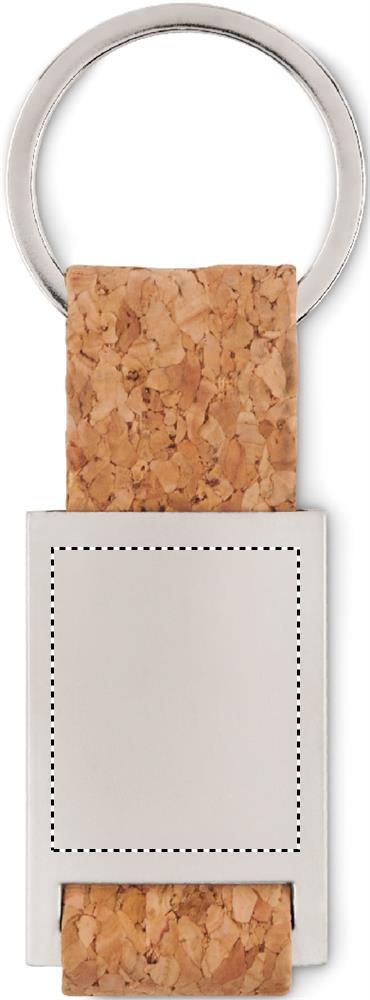 Metallinen suorakulmainen avaimenperä jossa on korkkia.