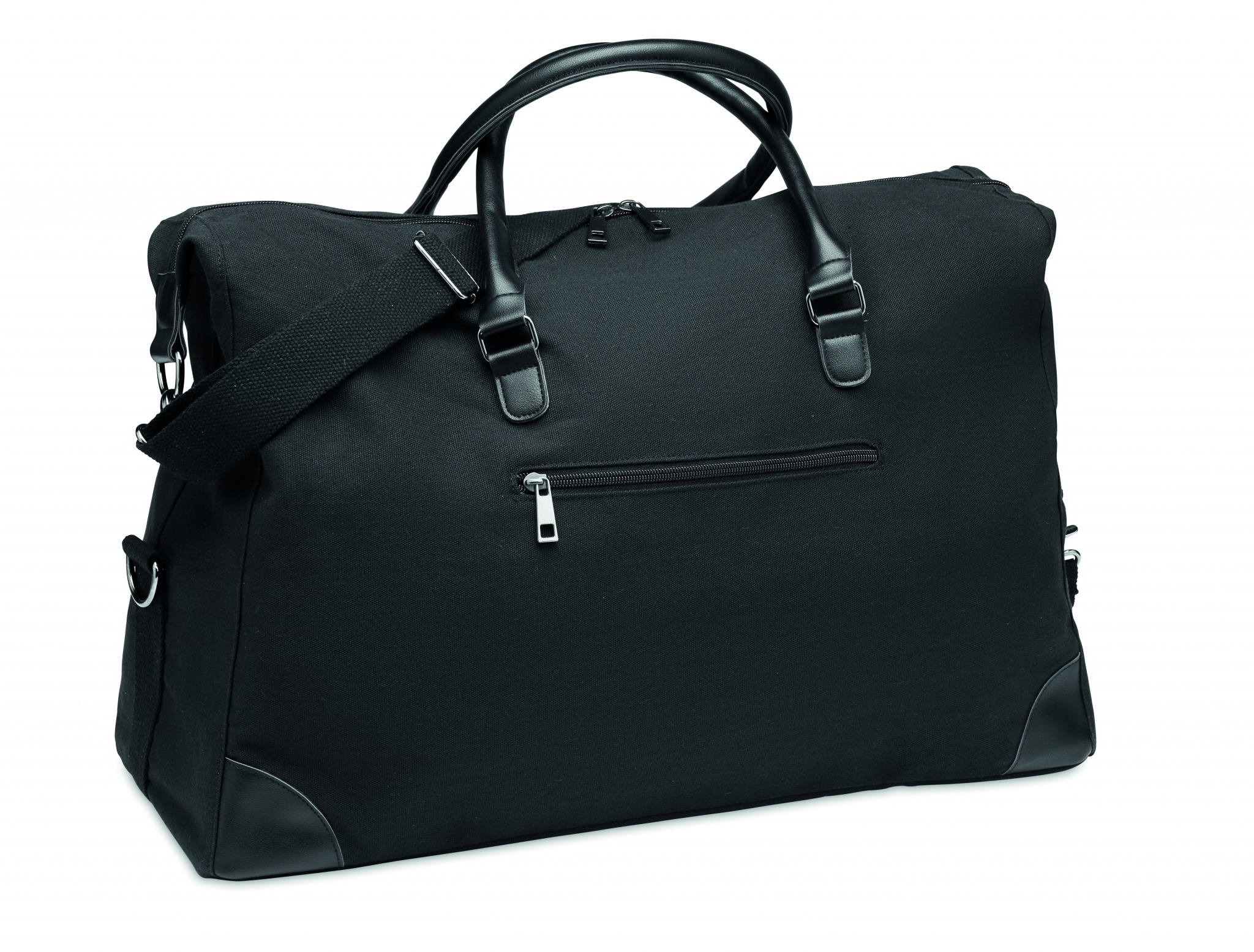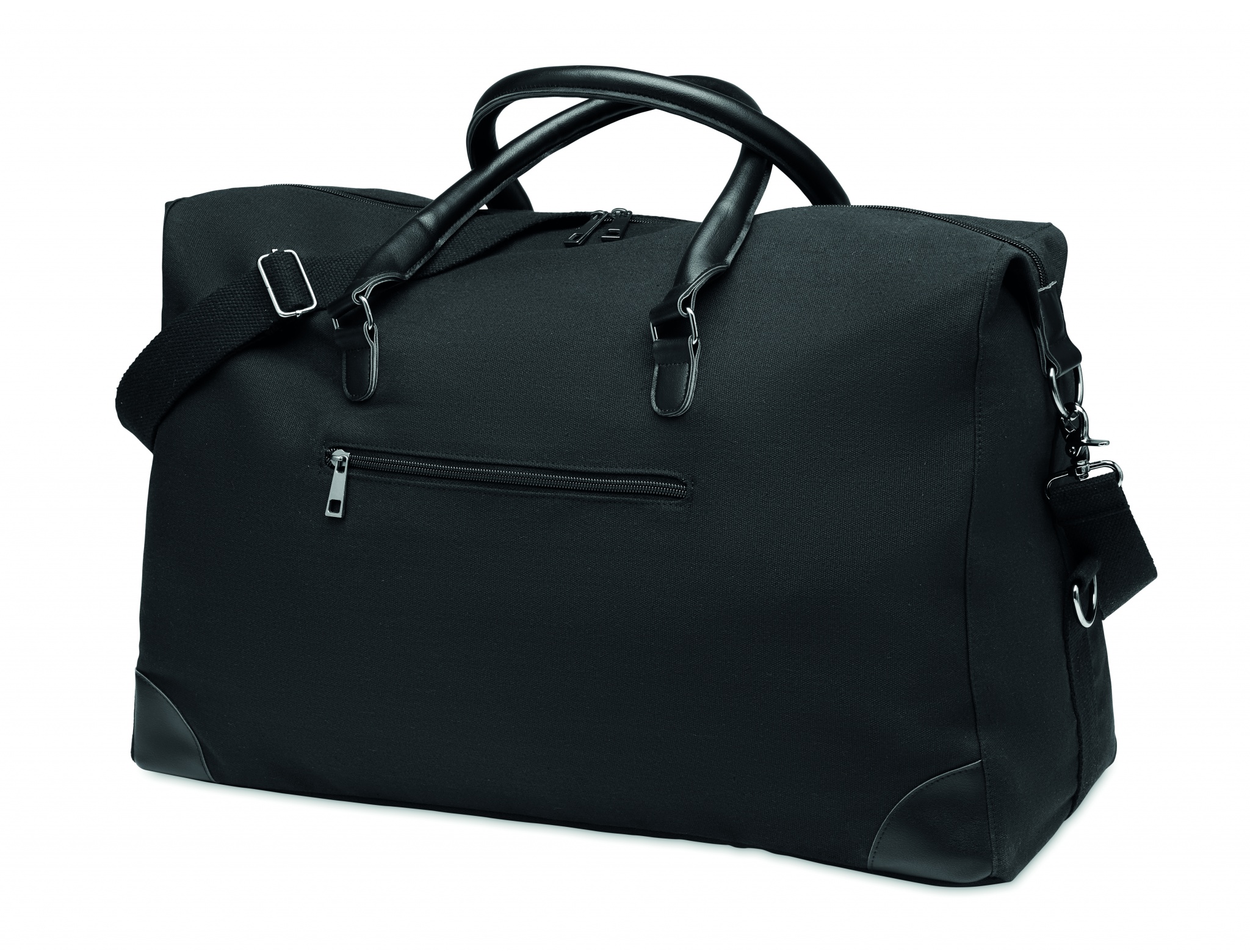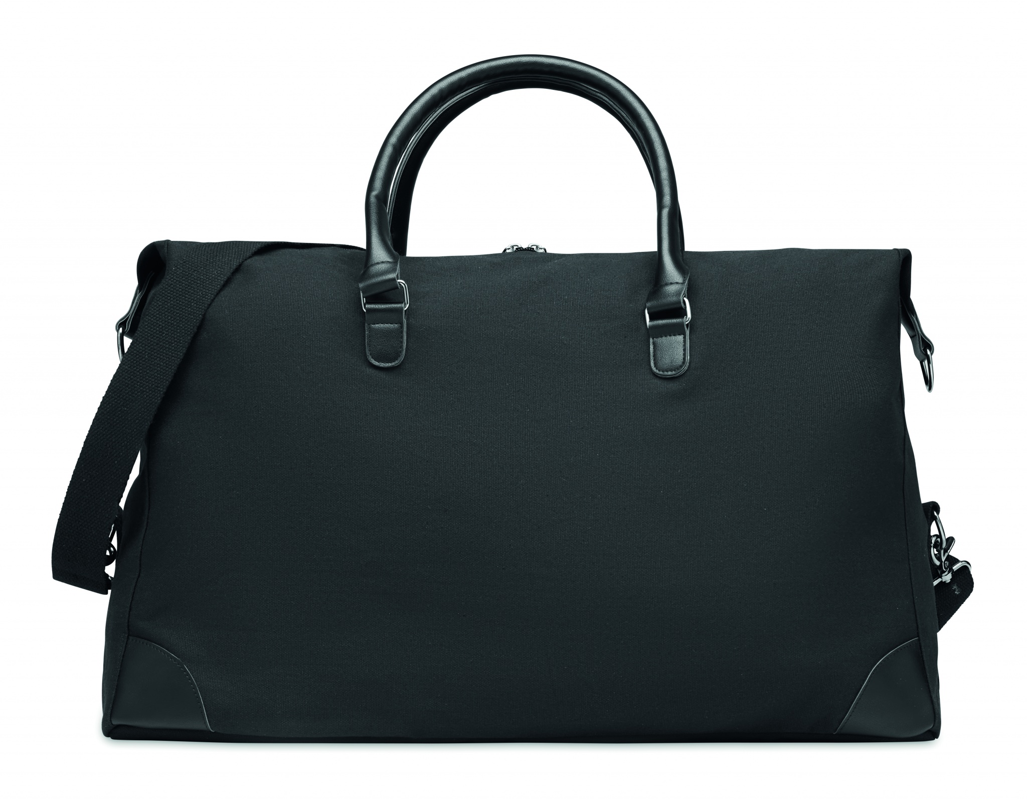340 gr/m² canvas laukku, kierrätetyillä PU yksityiskohdilla, RPET 210D vuorauksella ja säädettävät hihnat.
