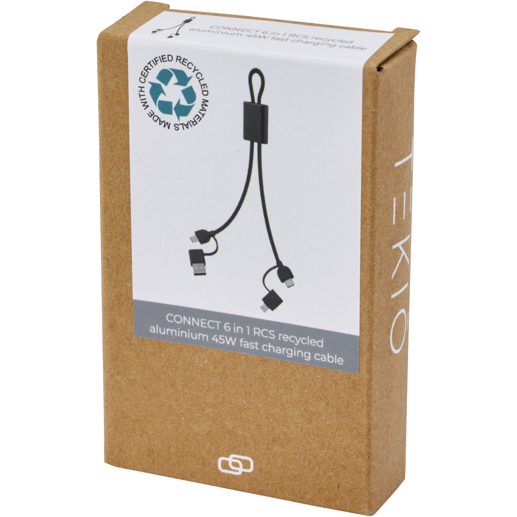 Logo trade liikelahja kuva: Connect 6-in-1 pikalataus- ja datasiirtokaapeli 45 W RCS-kierrätetystä alumiinista