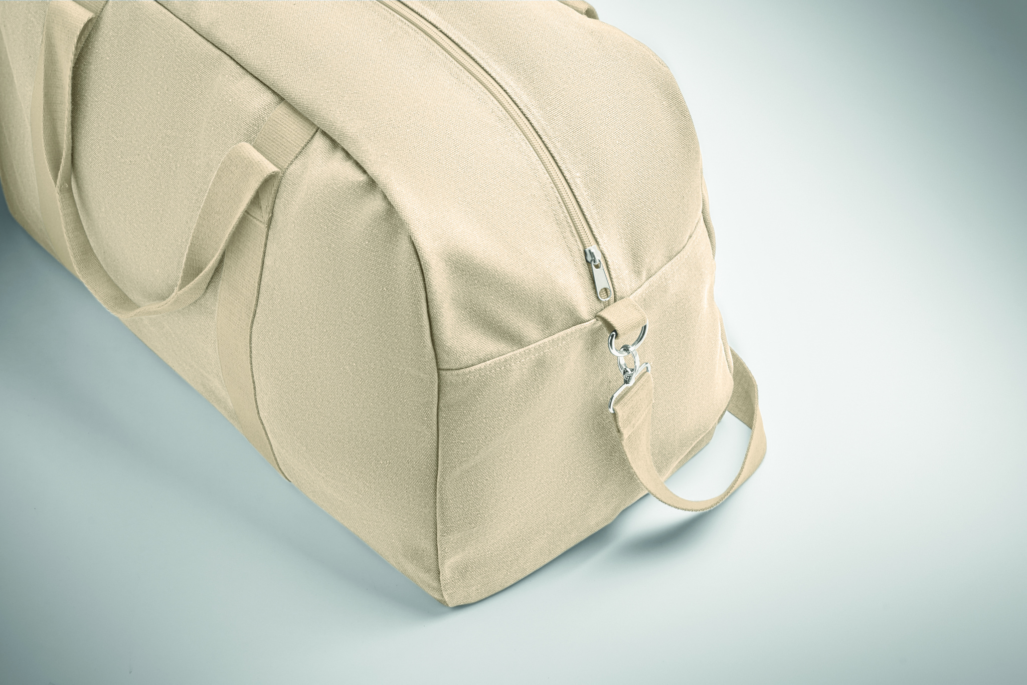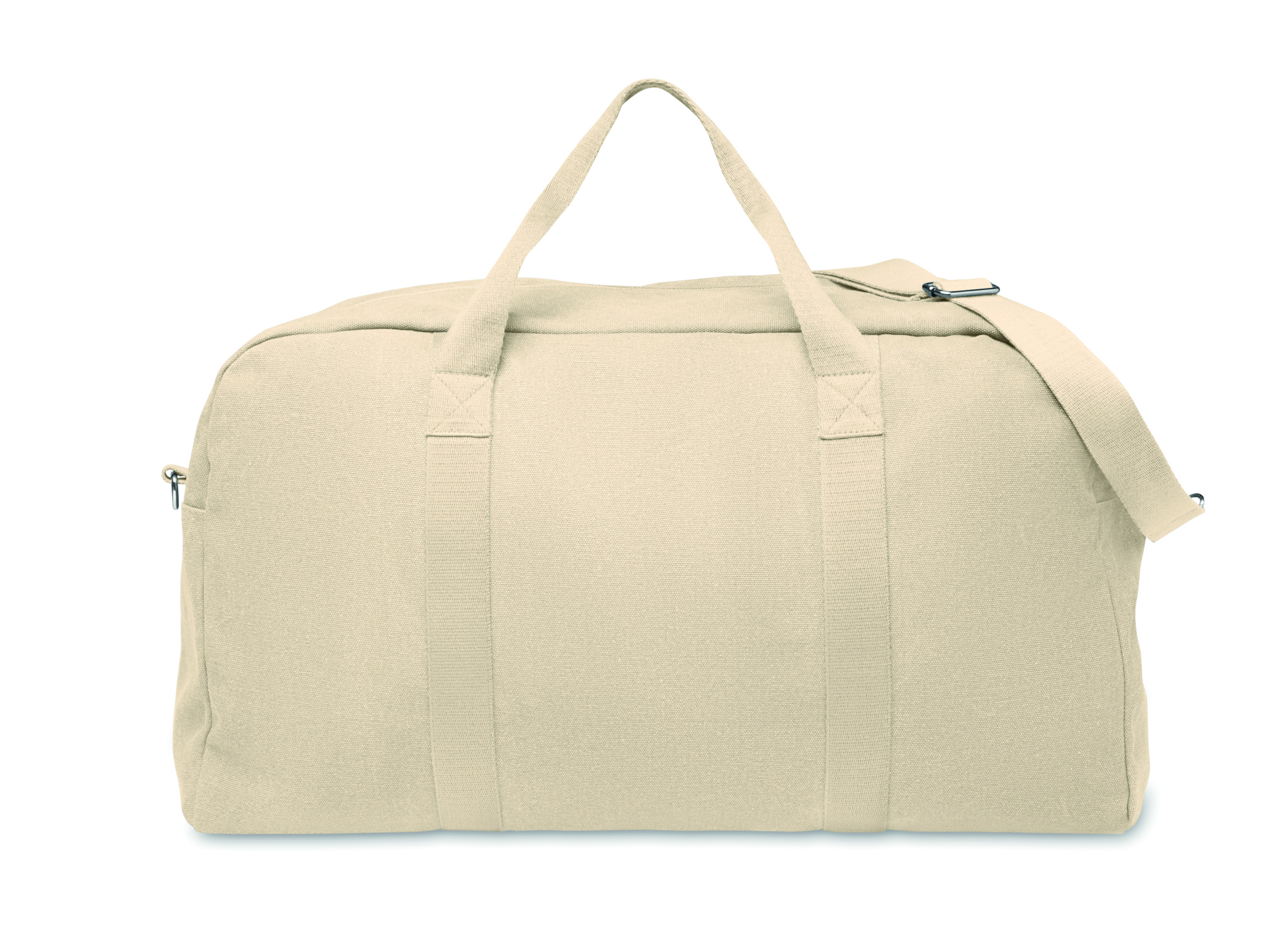 Duffle-matkalaukku kierrätetyistä 450 g/m² kankaista (60 % kierrätettyä puuvillaa ja 40 % kierrätettyä polyesteriä) säädettävällä ja irrotettavalla puuvillahihnalla.