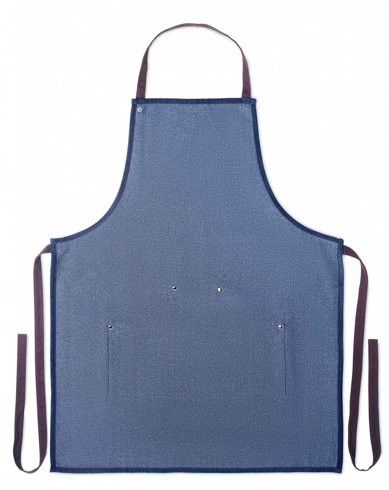 Säädettävä 240 gr/m² denim esiliina, 3 etutaskulla ja puuvilla hihnoilla. Pakattuna erilliseen laatikkoon.