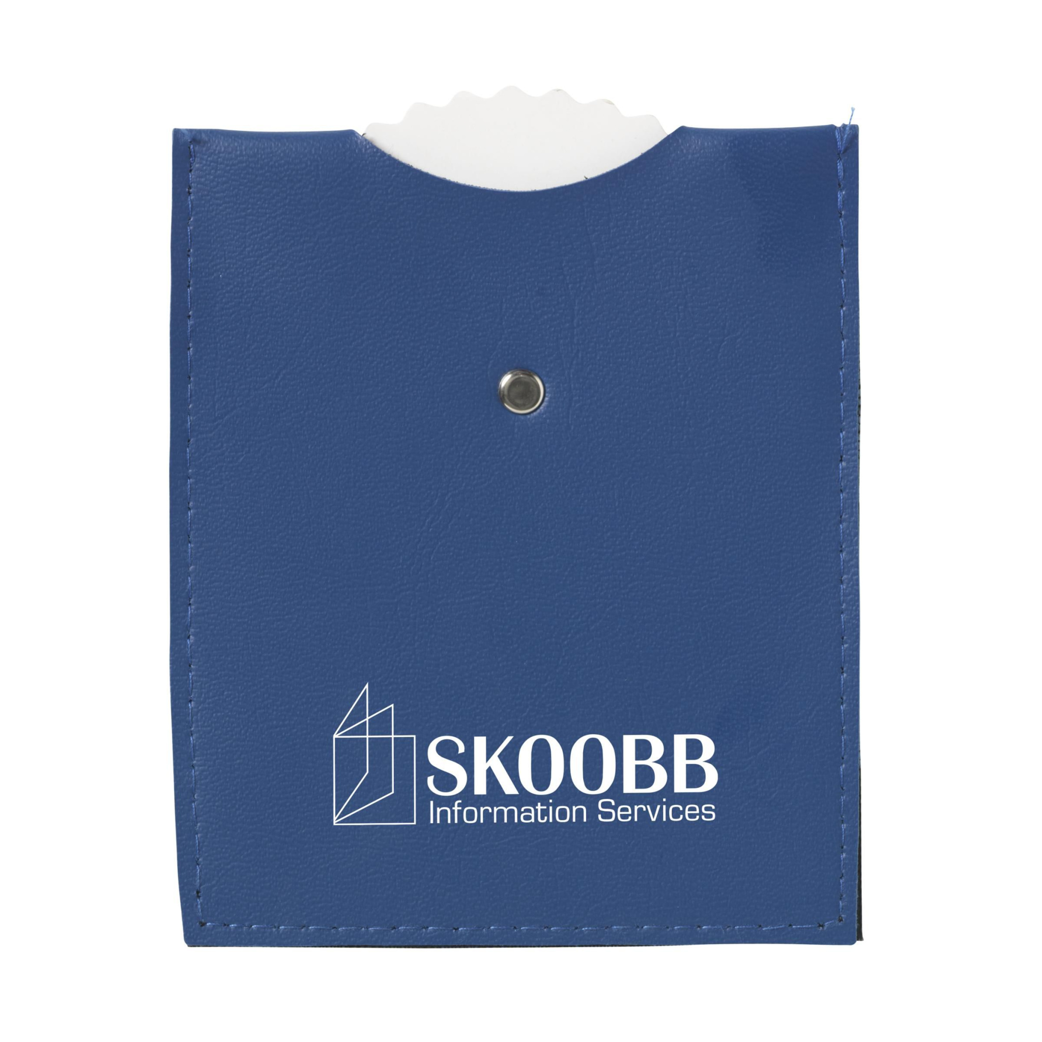 Sinistä keinonahkaa valmistettu pysäköintikiekko.