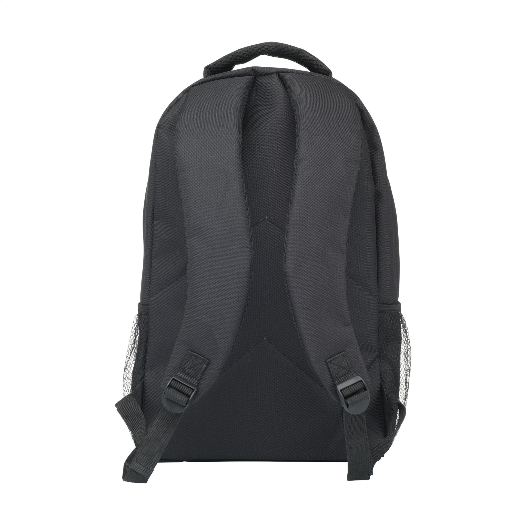 Vau! Reppu tukevasta 600D RPET:stä ja 2 vetoketjullista taskua. Tilavassa päälokerossa on vaahtomuovisuojataskut, joista yhteen mahtuu kannettava tietokone, jonka näyttökoko on jopa 15,6 tuumaa. Toinen lokero on ihanteellinen pienempien tarvikkeiden, asiakirjojen tai muistikirjan säilyttämiseen. Repun kyljestä löytyy verkkotasku juomapullolle ja laukun etuosassa on kätevä kuminauha, johon voi säilyttää takin, puseron tai vastaavan vaatekappaleen. Kantolenkki, säädettävät olkaimet ja repun takaosassa on pehmustettu vaahtomuovi lisää mukavuutta. Täysin vuorattu reppu on viimeistelty edestä fluoresoivilla korosteilla, mikä on loistava turvaominaisuus matkoilla pimeässä. GRS-sertifioitu. Kierrätysmateriaali yhteensä: 97 %. Kapasiteetti n. 20 litraa.