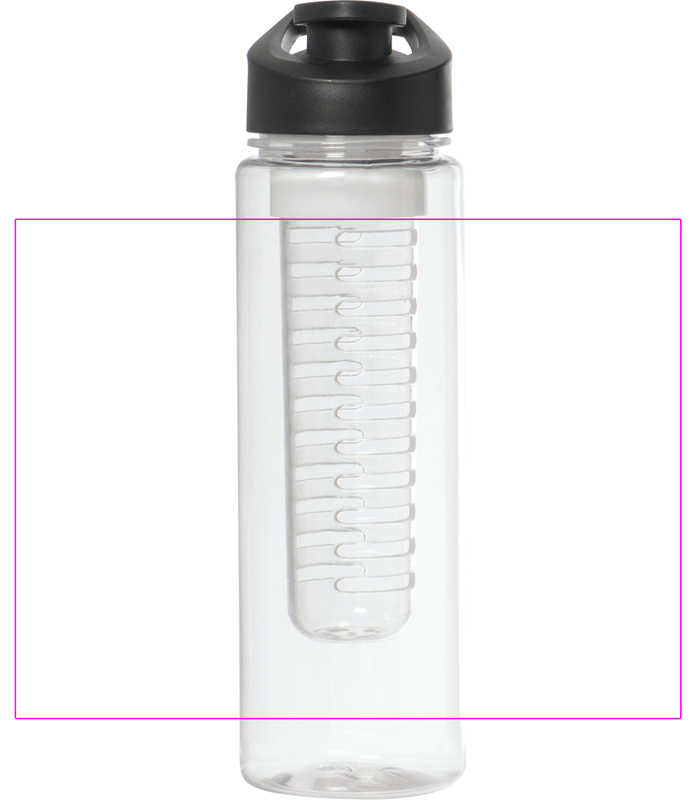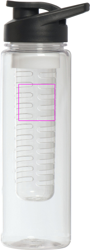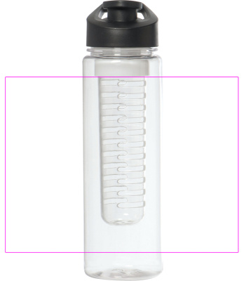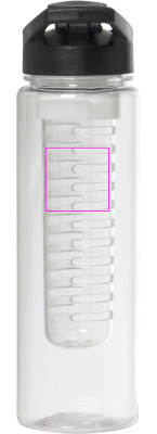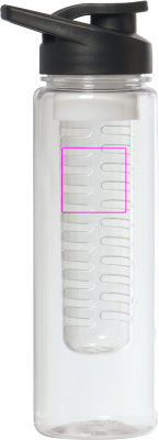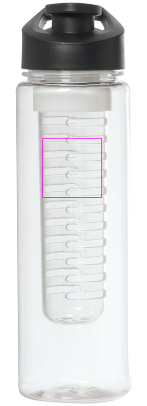 Suuri, vuotamaton juomapullo BPA-VAPAA (tilavuus 700 ml), jossa irrotettava hedelmäsisäke. Kannessa on suuri juoma-aukko suljetulla ja integroidulla kantokahvalla. Painamme logosi pulloon.