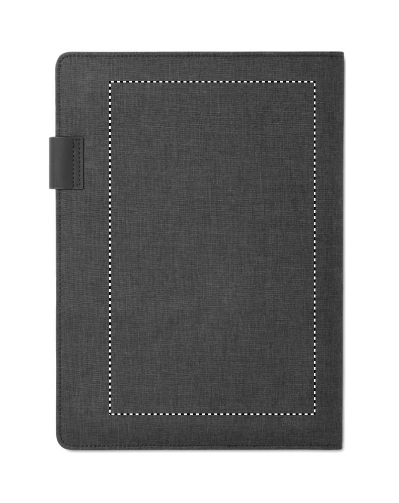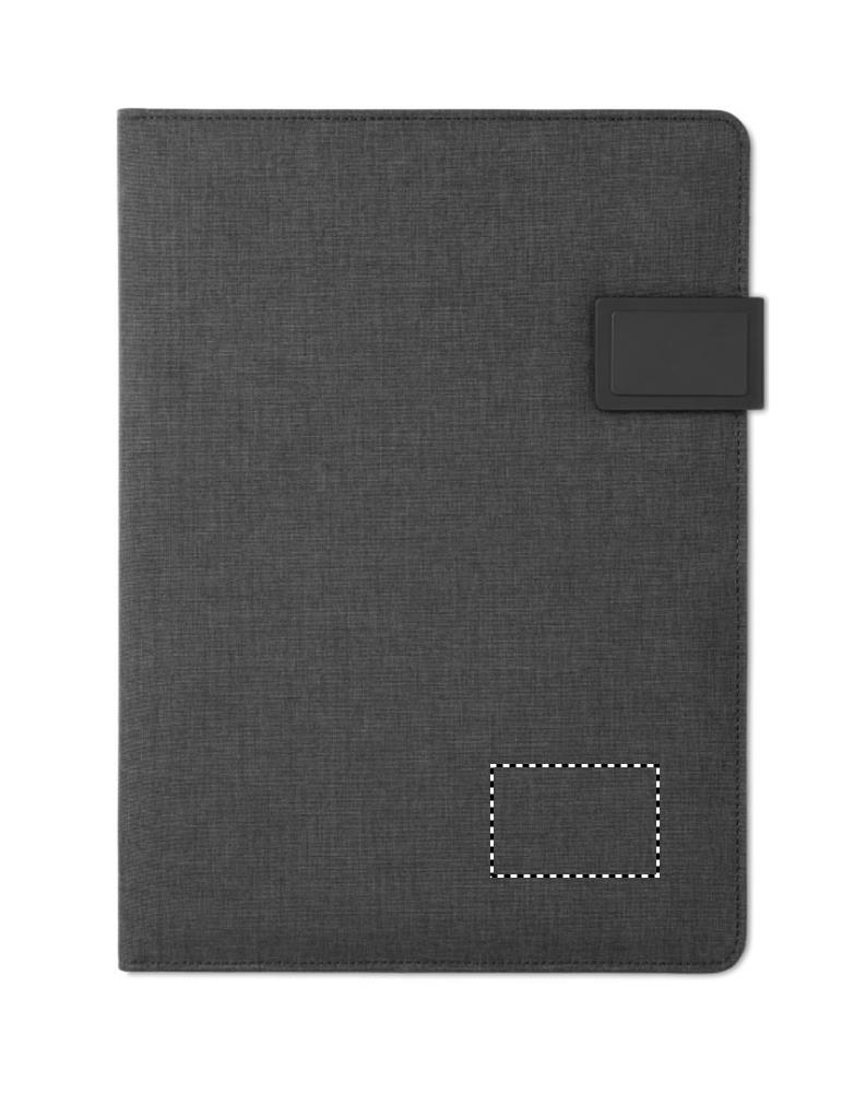 Pellava/PU A4 kokouskansio, jossa magneettisuljin. Sisäänrakennettu varavirtalähde 4000 mAh:n kapasiteetilla, joka riittää älypuhelimen lataamiseen 1-2 kertaa mallista riippuen. Sisäänrakennettu mikro-USB C- tyypin liitin. Sisältää matkapuhelintelineen, 20-sivuisen lehtiön ja useita pieniä taskuja helppoa säilytystä varten.