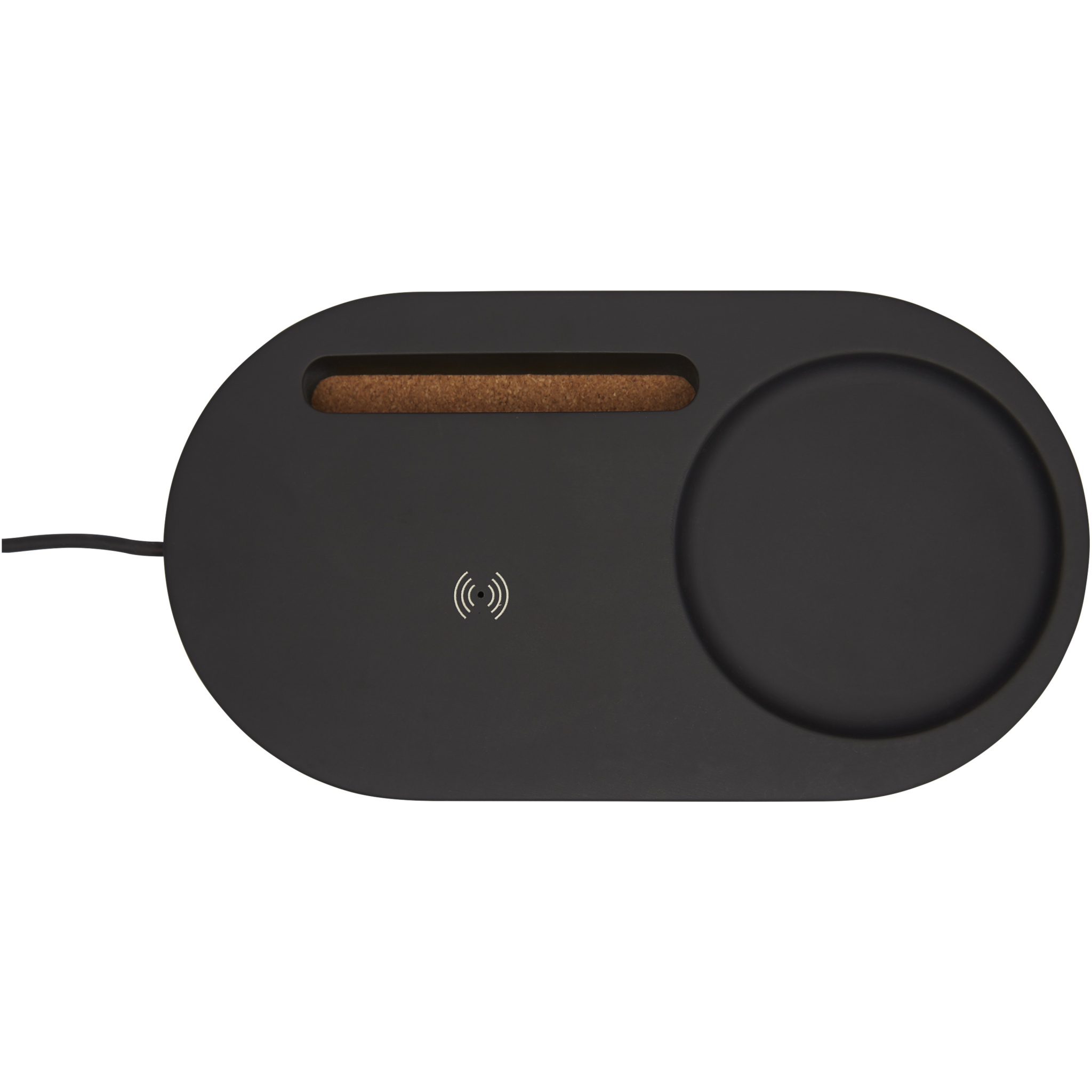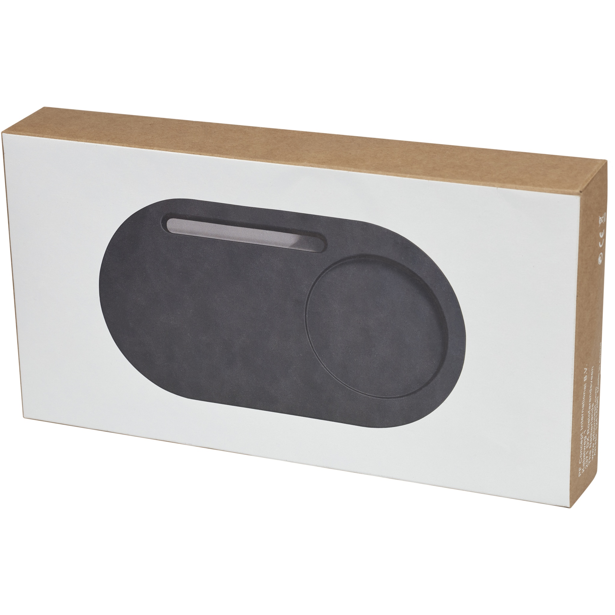 5 W:n langattomasti lataava työpöydänjärjestäjä, joka on valmistettu luonnollisen kalkkikiven ja korkin yhdistelmästä. Ladataksesi laitteen ilman langatonta teknologiaa tarvitset ulkoisen latausvastaanottimen. Pakattu lahjapakkaukseen ja mukana ohjekirja (molemmat valmistettu ympäristöystävällisestä materiaalista). Mukana 100 cm:n USB-kaapeli.