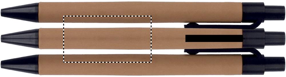 Muistikirja pehmeällä korkki kannella, 140 viivoitettua sivua (70 arkkia) ja kierrätetty kuulakärkikynä mustalla musteella. Kynän runko on valmistettu kierrätetystä kartongista, yksityiskohdat valmistettu maissi PLA. Korkki on luonnonmateriaali, strukturaalinen laatu ja pinnan huokoisuus voi aiheuttaa eroavaisuuksia tuotteissa painatuksen jälkeen