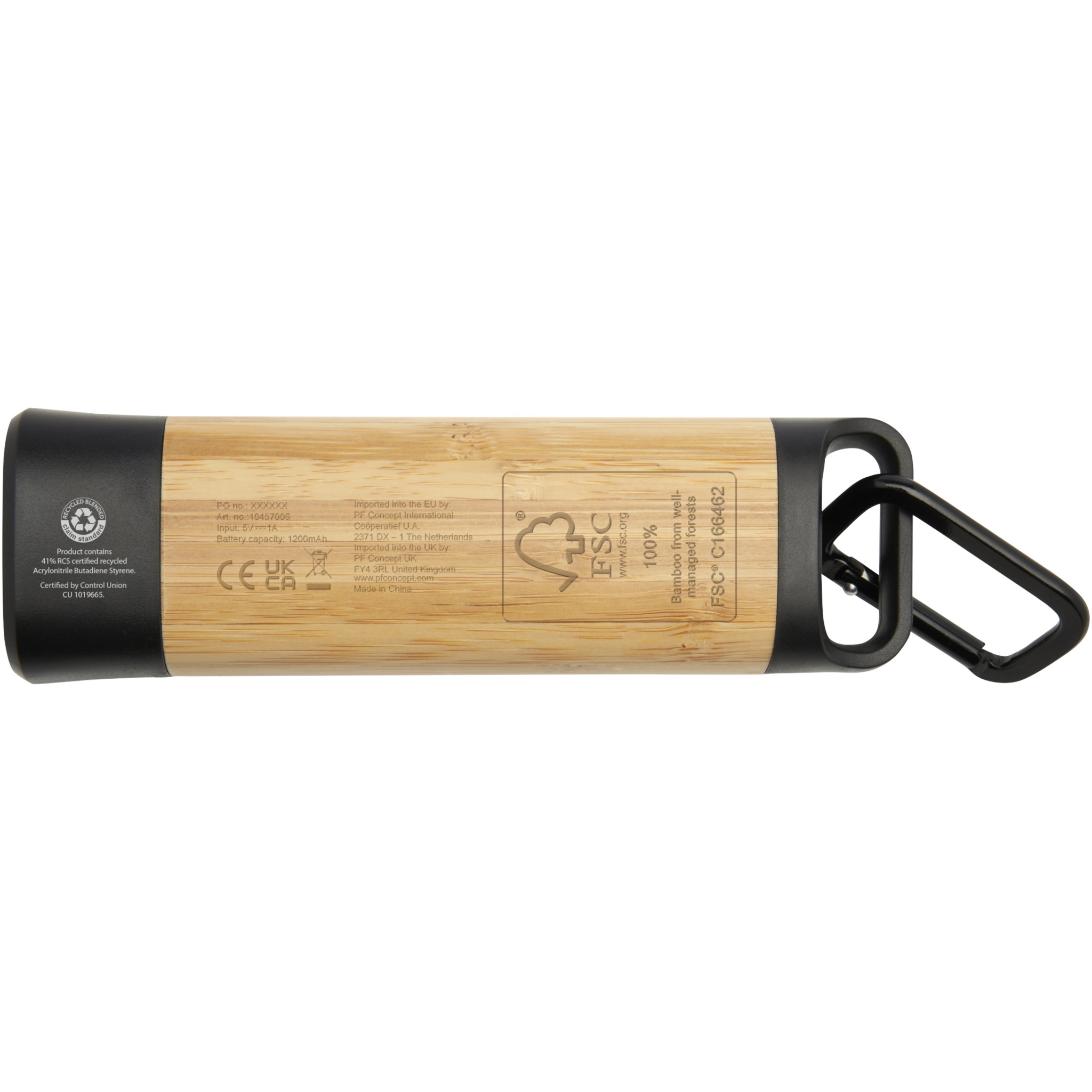 Logo trade mainostuotet tuotekuva: Kuma bambusta / RCS-kierrätetystä muovista valmistettu taskulamppu karabiinihaalla