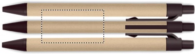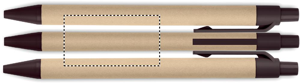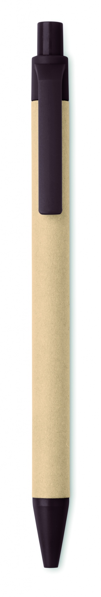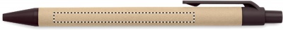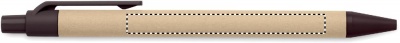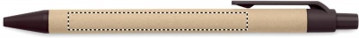 Painomekanismilla toimiva kuulakärkikynä sinisellä musteella, kynän runko on valmistettu paperista ja yksityiskohdat 40% kahvin kuoresta/ 60% ABS.