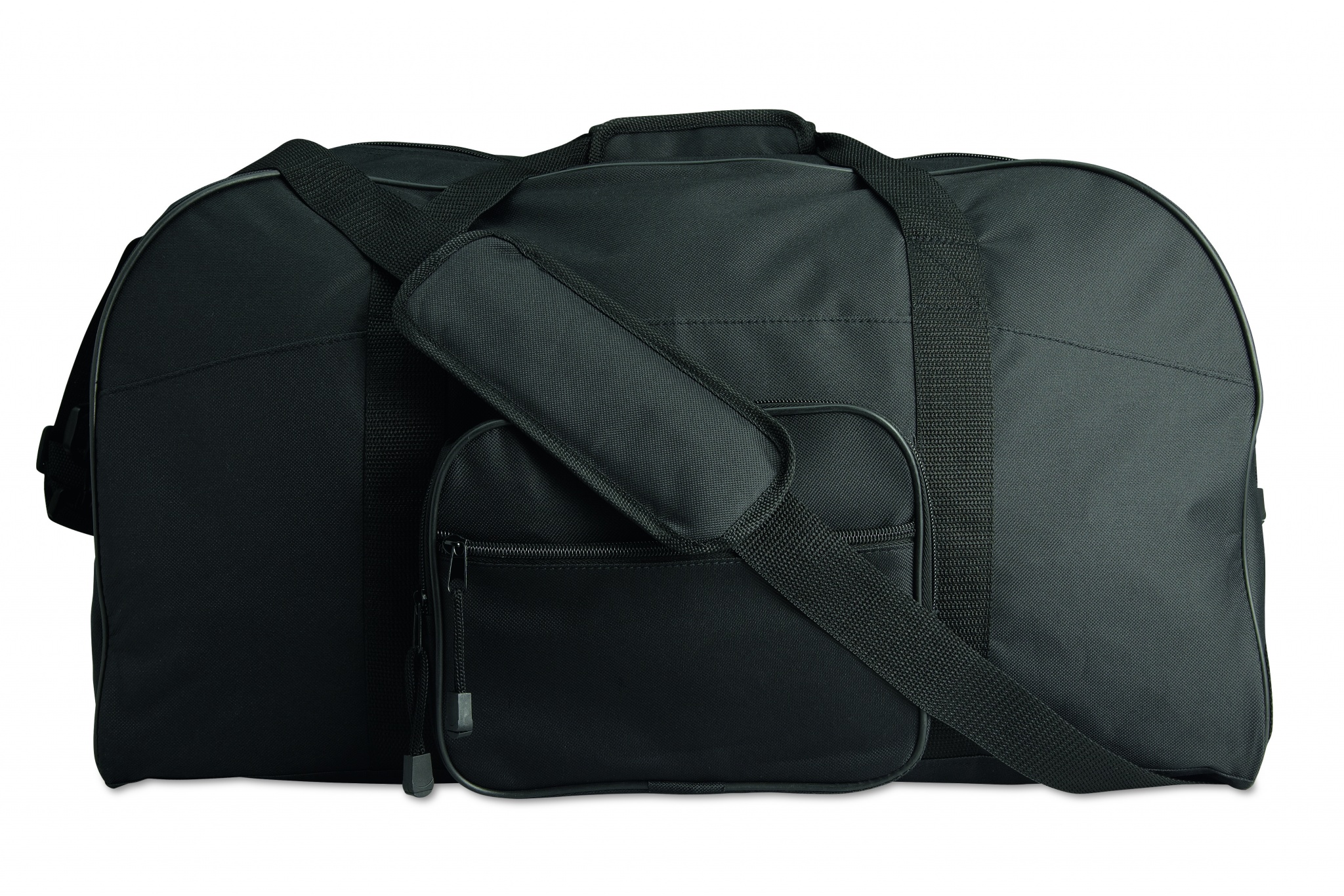 600D polyesterinen urheilu-/viikonloppulaukku, etutasku ja säädettävä/ irrotettava olkahihna.