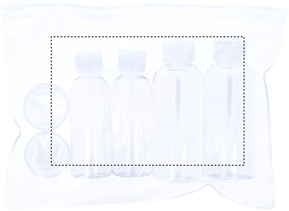 Lentomatkustuspussi, 6 tyhjää pulloa. ( 100 ml, 50 ml, ja 10 ml)