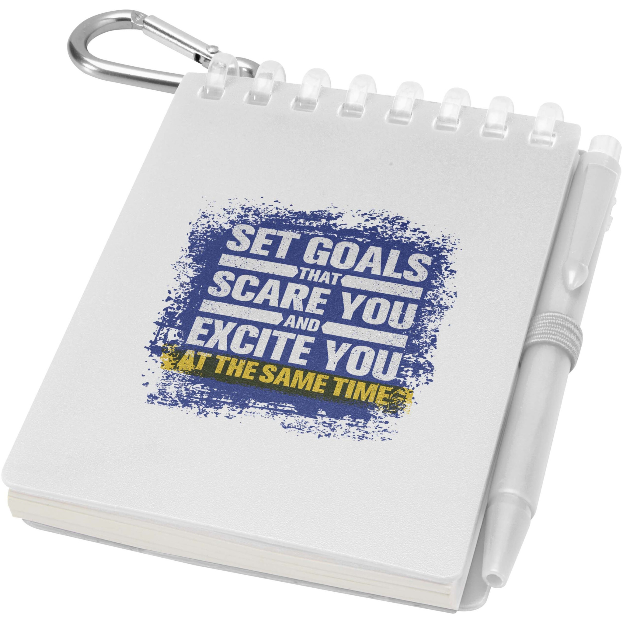 Lig Mini muistikirja- ja kynäsetti on kompakti ja käytännöllinen kumppani muistiinpanojen tekemiseen liikkeellä ollessa. Kierresidotussa muistikirjassa on pehmeät kierrätysmuovikannet ja 70 tyhjää 120 g/m²:n vedenkestävää kivipaperiarkkia, joten se sopii erinomaisesti ulkokäyttöön. Pyöristettyjen kulmien ja sisäänrakennetun kynälenkin ansiosta se on tyylikäs ja toiminnallinen. Yhteensopiva kuulakärkikynä on valmistettu kierrätetystä ABS-muovista, sen kirjoitusmuste on mustaa ja kirjoituspituus on 250 metriä. Värikoordinoidun metallirenkaan ansiosta setti on helppo kiinnittää reppuun, laukkuun tai avaimenperään, mikä tekee siitä täydellisen kestävän ja kannettavan muistiinpanojen tekemiseen. Muistikirjan koko: 11 x 7,5 cm.