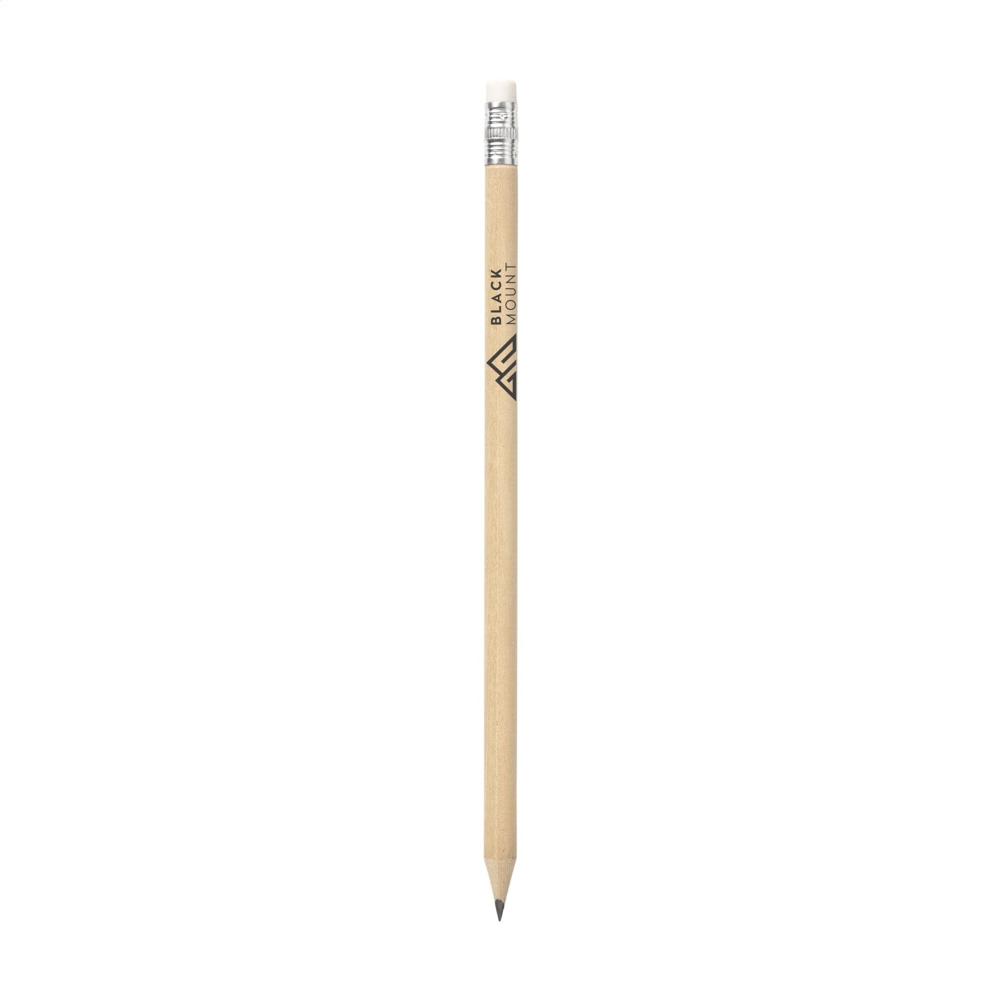 Teroitettu puinen (HB) kynä pyyhekumilla.
