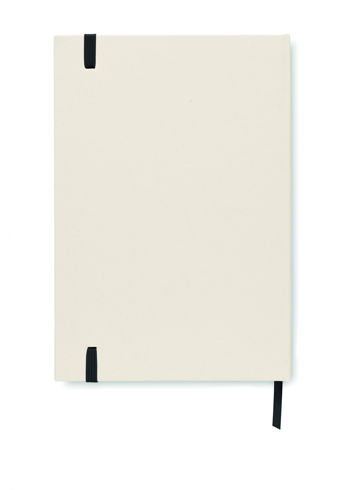 Kierrätysmateriaalista valmistettu A5 muistikirja kovalla kannella. Materiaali on 70% maitopurkeista tehtyä kierrätyskartonkia ja 30 % kierrätyspaperia. Sisällä 160 viivoitettua sivua (80 arkkia 80 g/m²) kierrätyspaperia. Suljetaan kuminauhalla ja muistikirjassa on kirjanmerkki.
