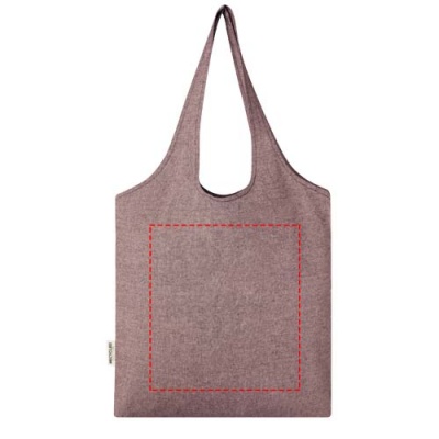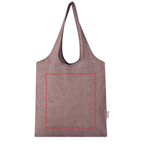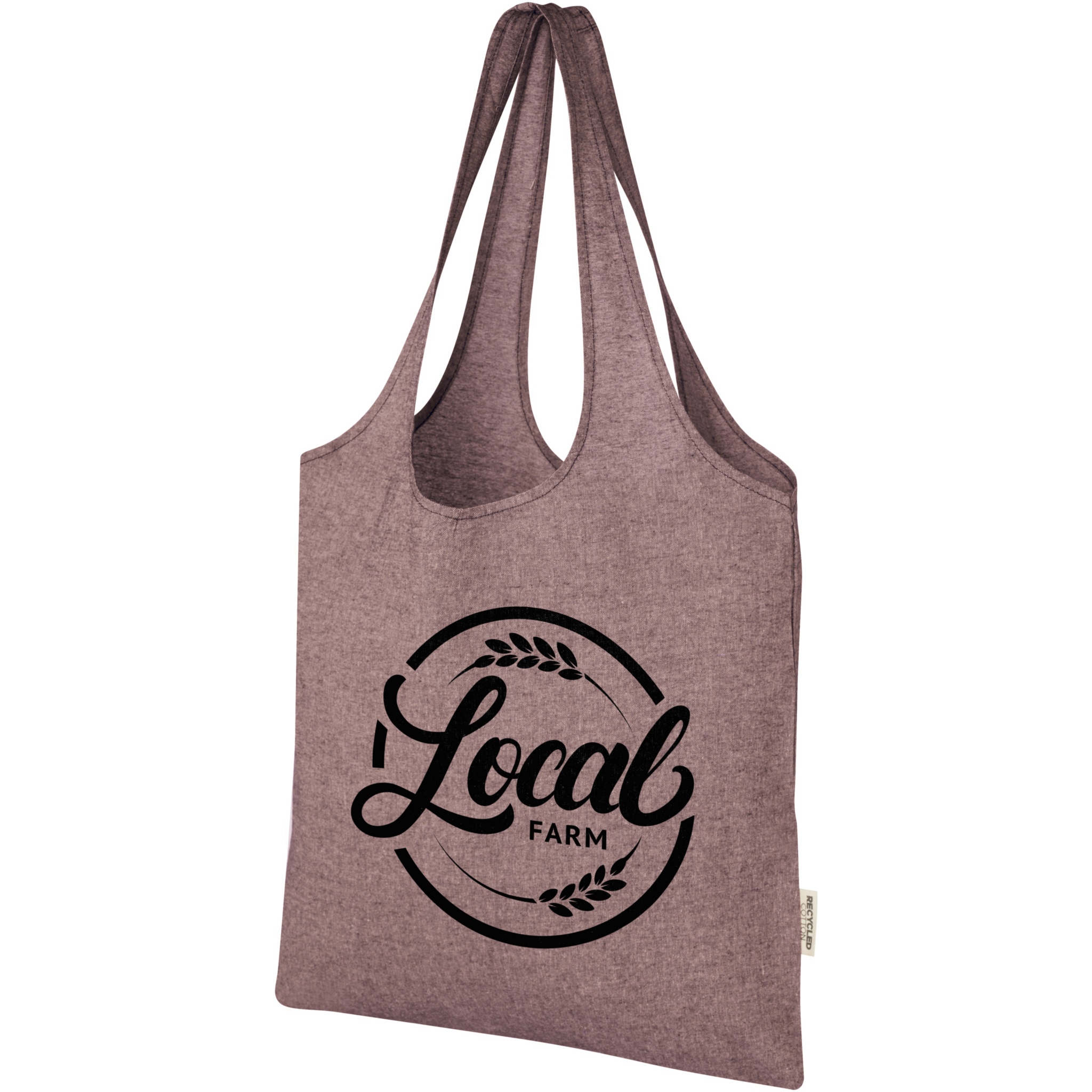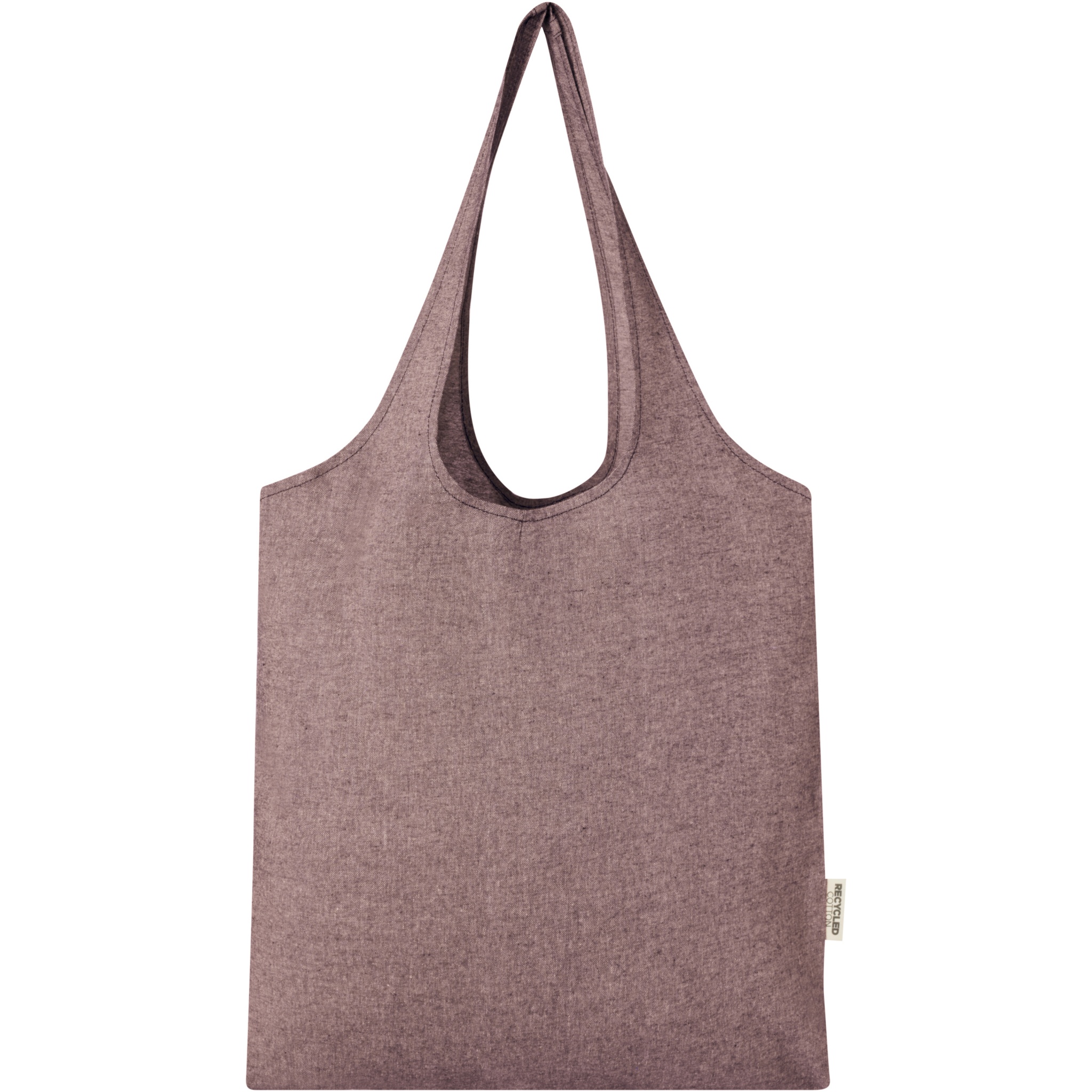 Trendikäs 150 g/m² ostoskassi, jossa on avoin päälokero ja 25 cm pitkät kahvat. Valmistettu kierrätetystä puuvillasta ja täysin uudelleenkäytettävissä, joten se on erinomainen vaihtoehto muovikasseille. Varsinaisen tuotteen väri saattaa vaihdella hieman tuotantoprosessin luonteen takia. Kantokyky 5 kg.