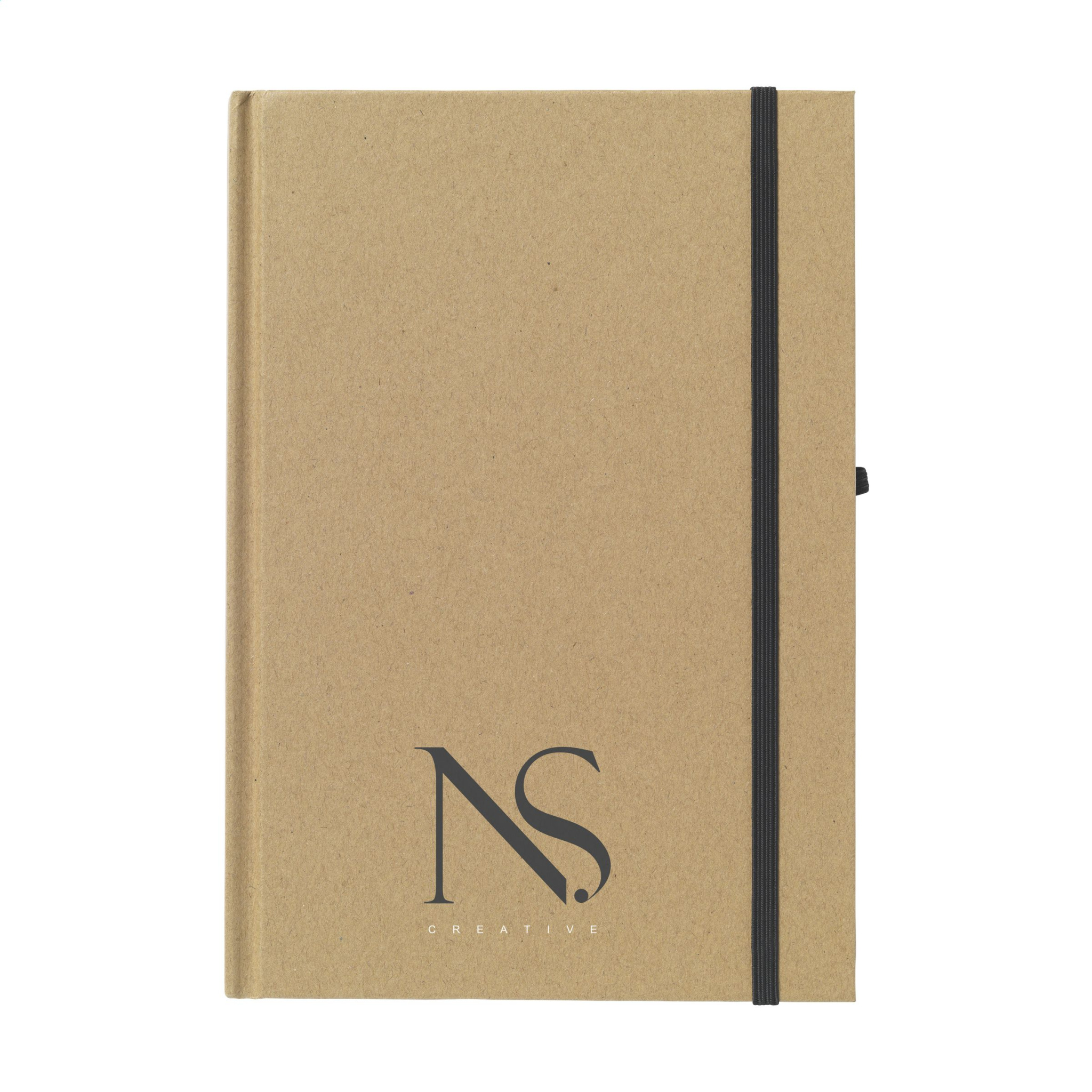 Kierrätysmateriaalista valmistettu A5-kokoinen muistikirja. Noin. 80 arkkia/160 sivua kermanväristä, vuorattua paperia (70 g/m²), kätevä kynälenkki ja joustava suljin.