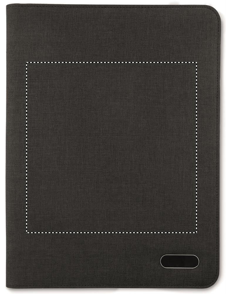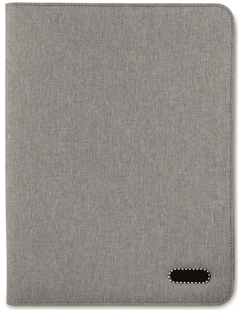Vetoketjullinen A4 portfolio kaksisävyisestä polyesteristä, sisältää sisätaskut, kynänsilmukan ja 20 sivuisen muistilehtiön.