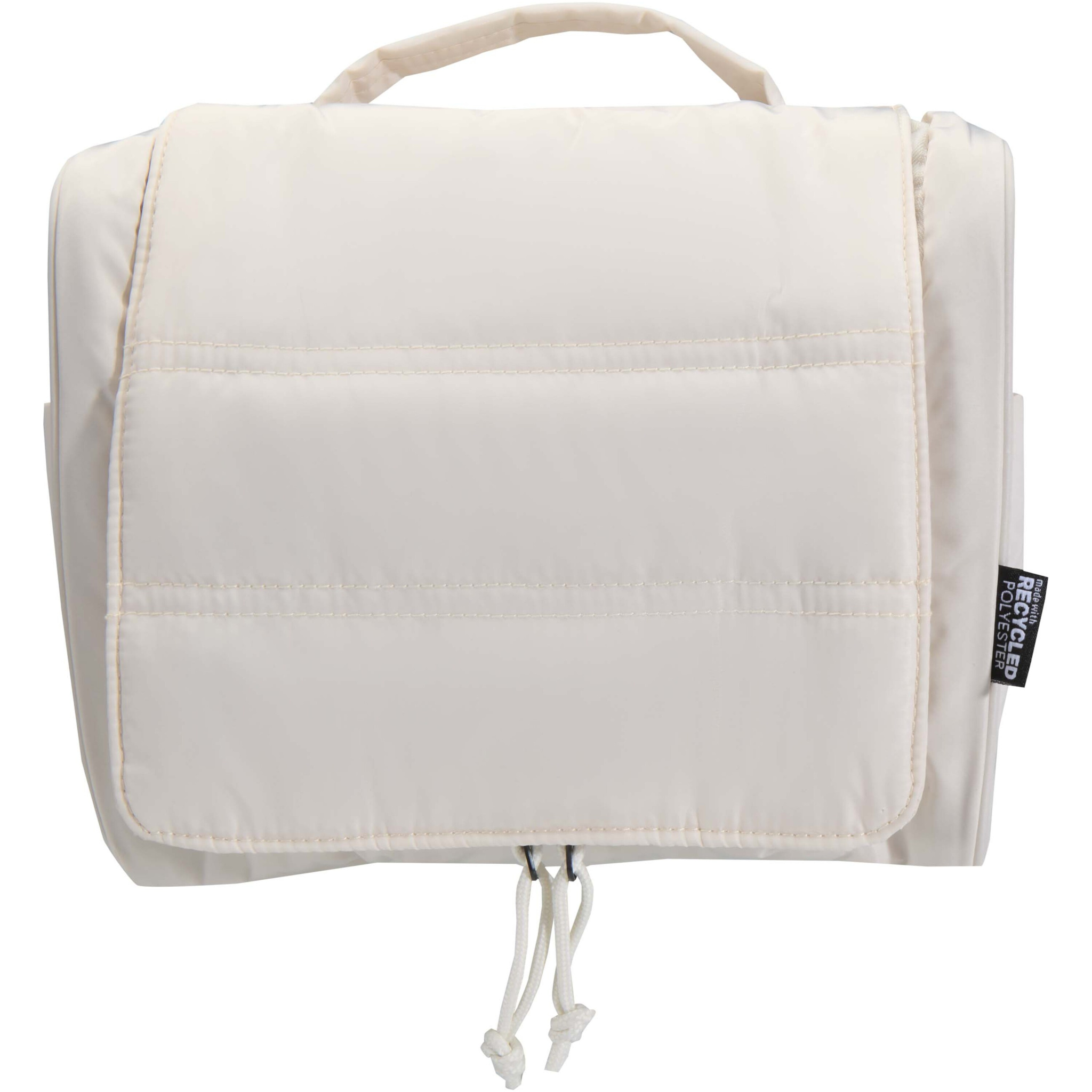 Ripustettava Puffer-kosmetiikkalaukku on valmistettu GRS-sertifioiduista kierrätysmateriaaleista, ja sen ainutlaatuinen muotoilu takaa arjen kätevyyden. Tässä 8-litraisessa toilettilaukussa on tilava päälokero, jossa on kuusi sisätaskua, kaksi sivutaskua ulkopuolella ja kätevä koukku oveen tai pyyhetelineeseen ripustamista varten. Pehmustettu kahva tekee kantamisesta helppoa, ja mallille tunnusomainen toppapehmuste lisää tyyliä ja suojaa. Kevyt ja vettähylkivä laukku pitää tärkeimmät tavarasi järjestyksessä ja turvassa missä tahansa matkustatkin.