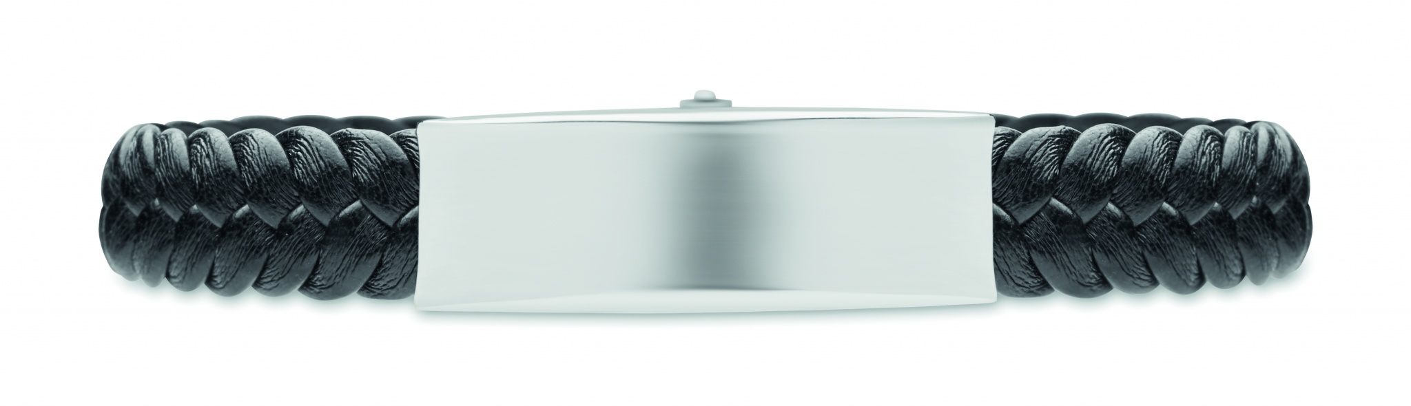 Punottu tekonahkainen ranneke, jossa on kiillotettua terästä. Push-lock lukko. Ranteen ympärysmitta: 21 cm.