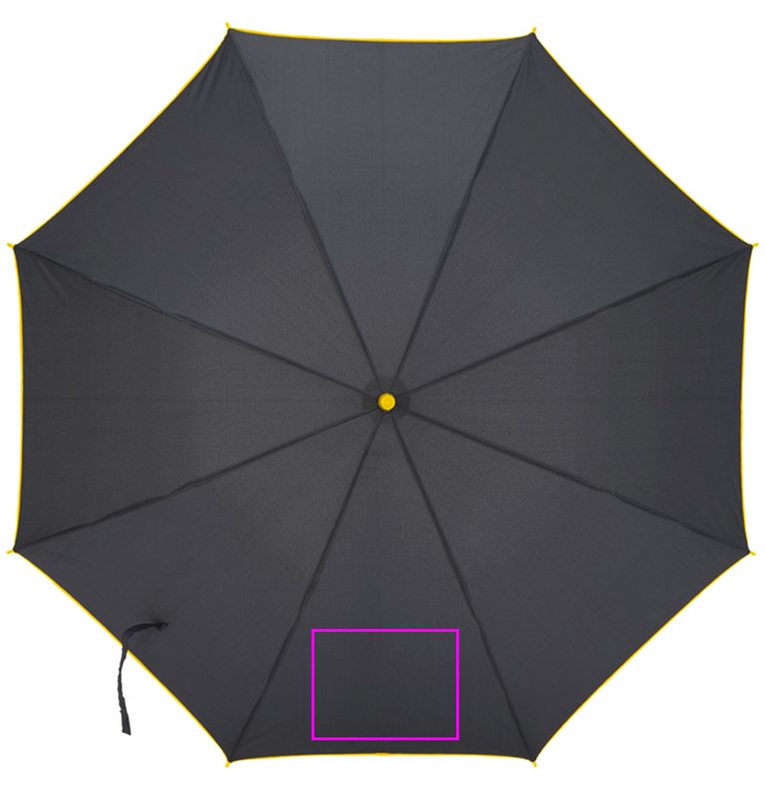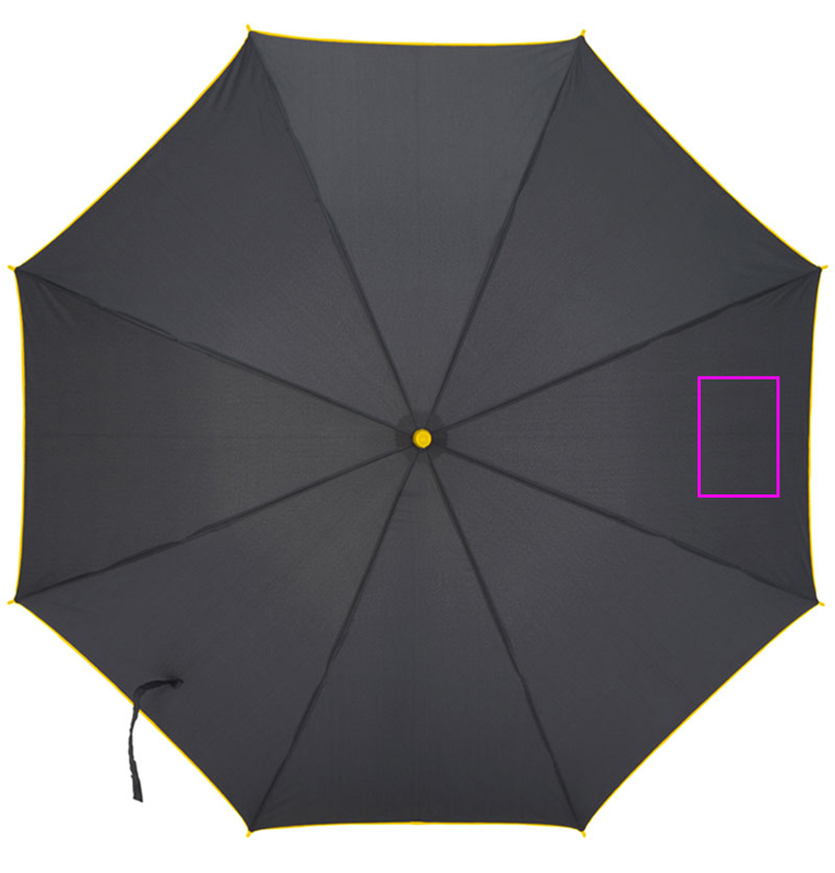 Automaattinen sateenvarjo 190T pongeesta lasikuituvarrella, muovikahvalla, värillisellä reunalla, kahvalla ja rungolla. Painamme logosi yhdelle segmentille.