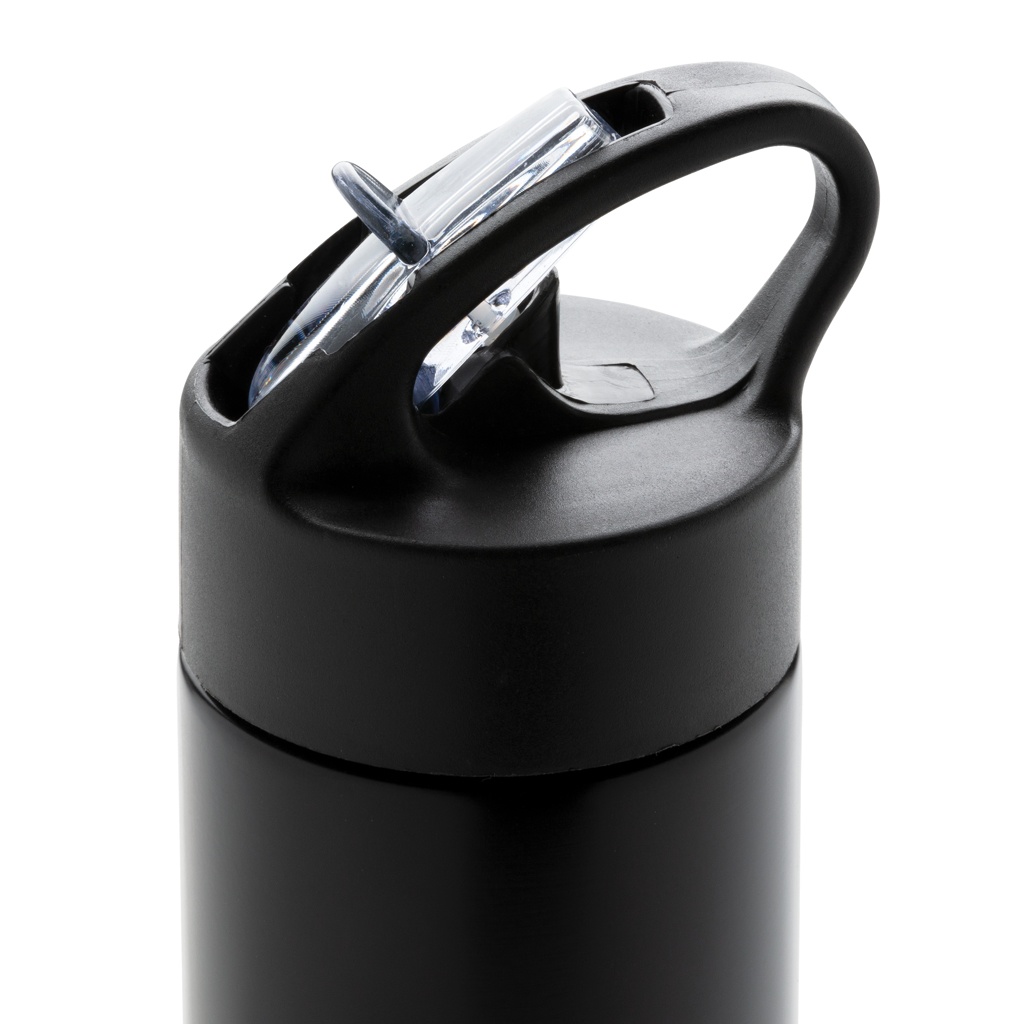 500 ml yksiseinämäinen ruostumaton teräspullo, musta mattapintainen PP-kansi, juomapilli ja juomista helpottava korkki. Rekisteröity design®