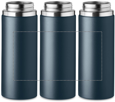 Kaksiseinäinen ruostumattomasta teräksestä valmistettu termospullo, jossa on ripustuslenkki korkissa. Tilavuus 500 ml.