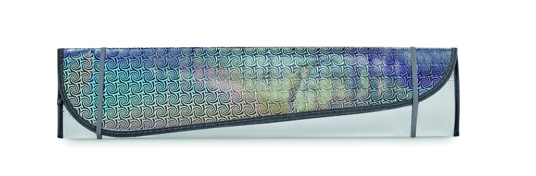 Taitettava tuulilasin aurinkosuoja. Vaahtomuovi 2mm ja PE-alumiinifolio.