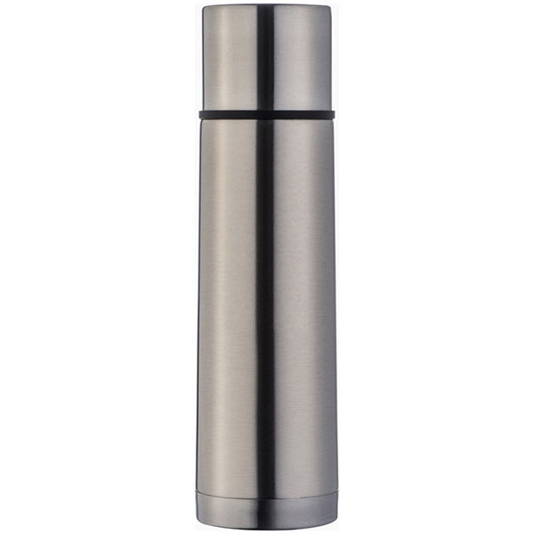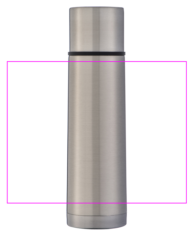 Ruostumattomasta teräksestä valmistettu 500 ml:n täyttöpullo ja kannessa integroitu kuppi. Logosi kaiverretaan.