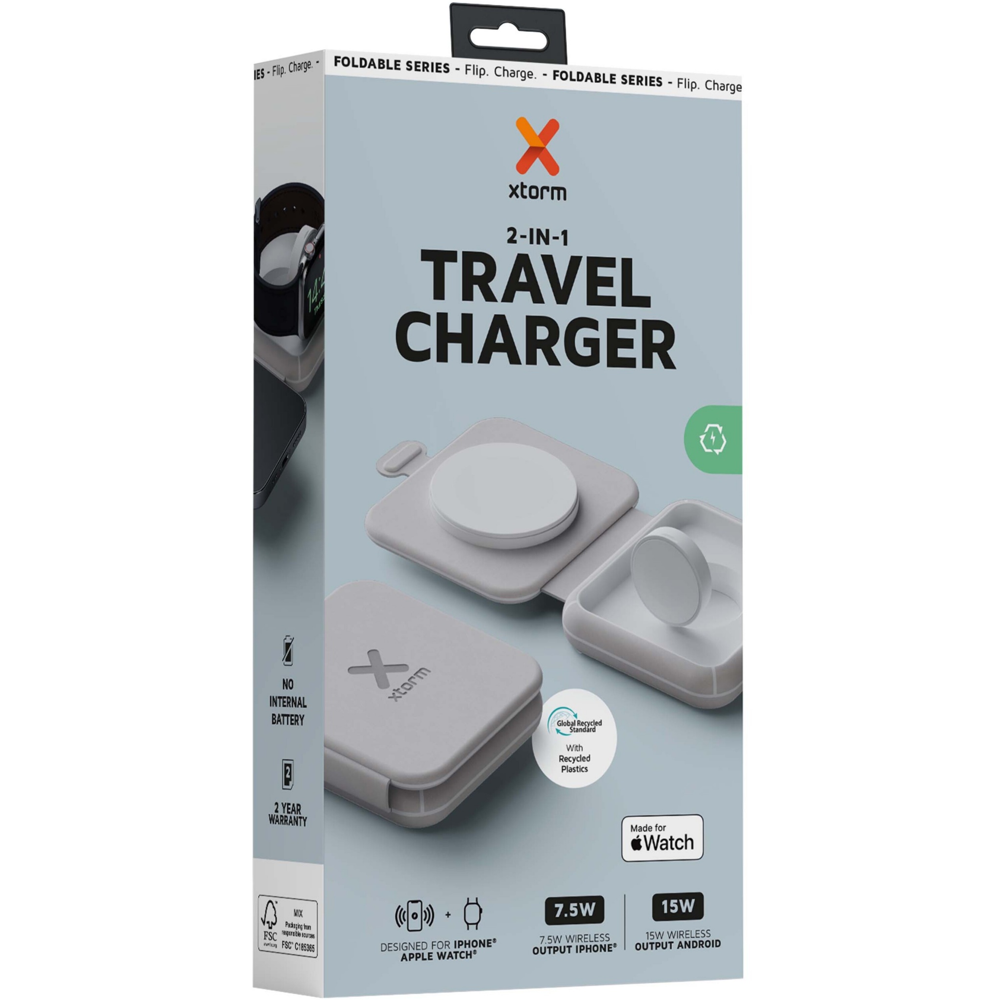 Xtorm XWF21 15 W:n taitettava langaton 2-in-1-matkalaturi, Harmaa