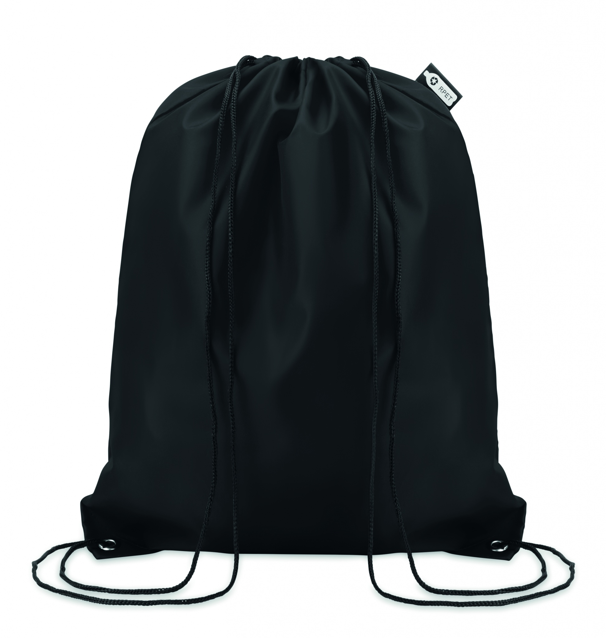 190T RPET maišelis su virvele, Juoda