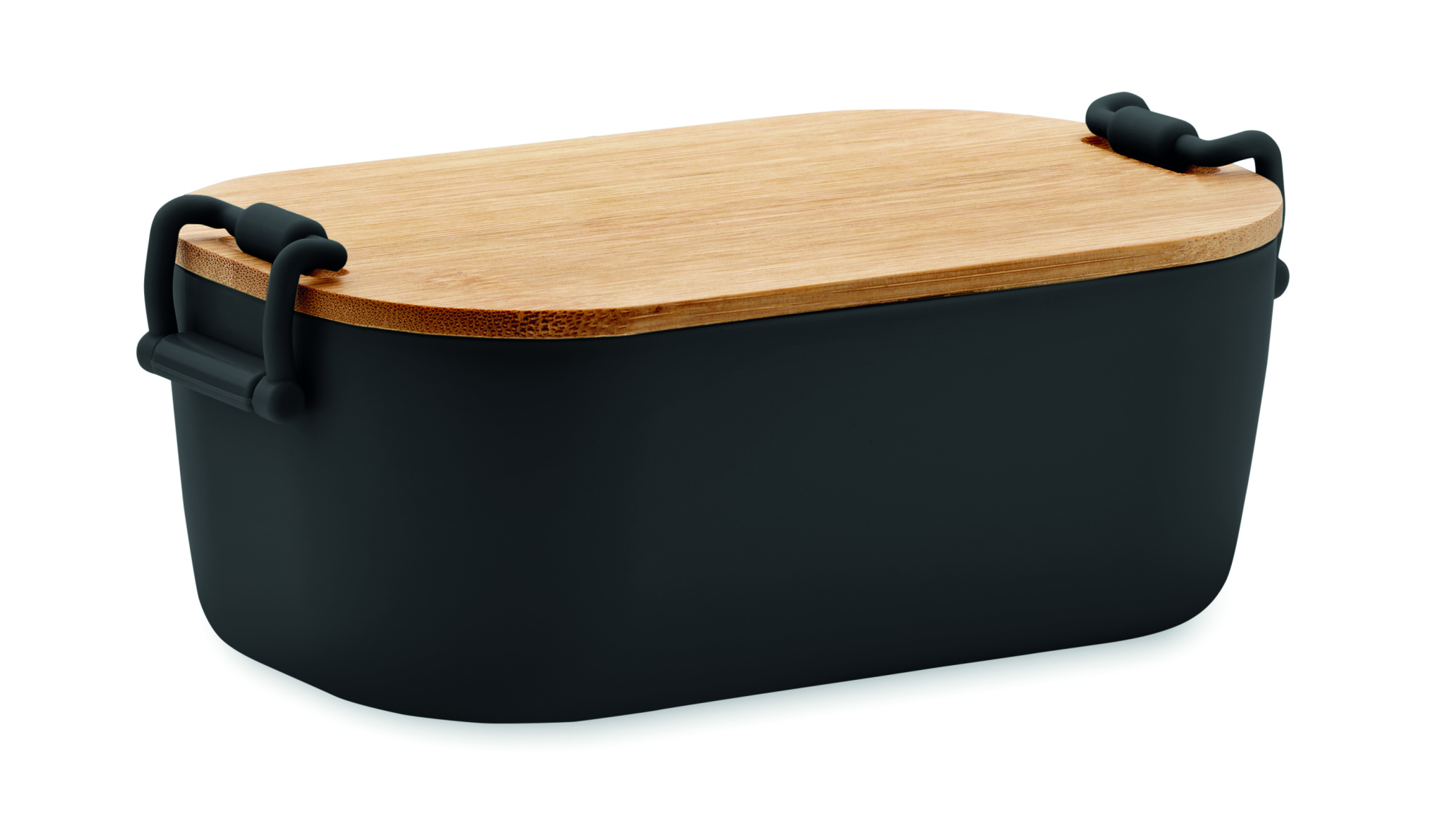 PP priešpiečių dėžutė su 2 šoniniais užsegimais ir bambukiniu dangteliu. Talpa 700 ml.