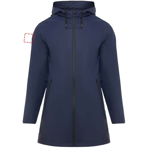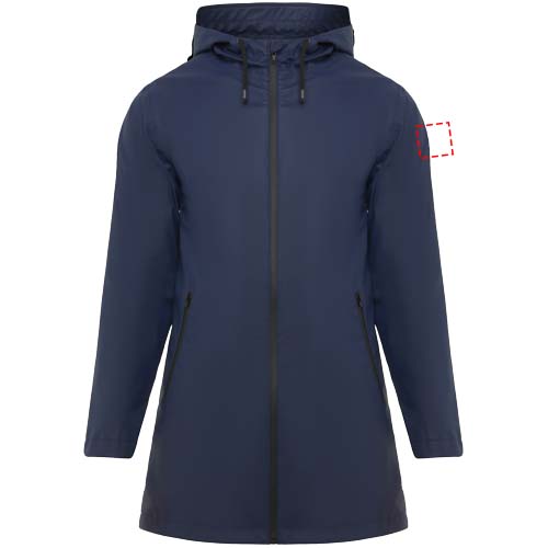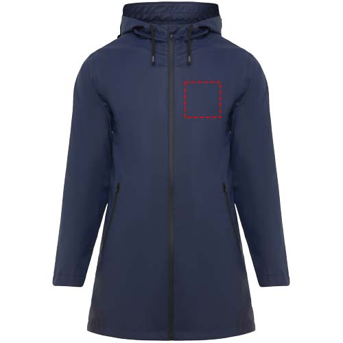 Neperšlampamas lietpaltis moterims. Gaubtas su smaigaliu. Termiškai sandarinami užtrauktukai ir siūlės. Juodos spalvos kontrastingos detalės. Dvi šoninės kišenės su užtrauktuku. Skeltukas nugaroje. Nuimama etiketė. Atsparus vandeniui. Modelis yra 179 cm ūgio ir dėvi S dydį.