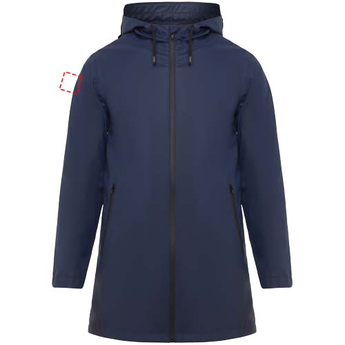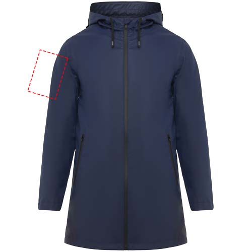 Neperšlampamas lietpaltis. Gaubtas su smaigaliu. Termiškai sandarinami užtrauktukai ir siūlės. Juodos spalvos kontrastingos detalės. Dvi šoninės kišenės su užtrauktuku. Skeltukas nugaroje. Nuimama etiketė. Atsparus vandeniui. Modelis yra 185 cm ūgio ir dėvi M dydį.