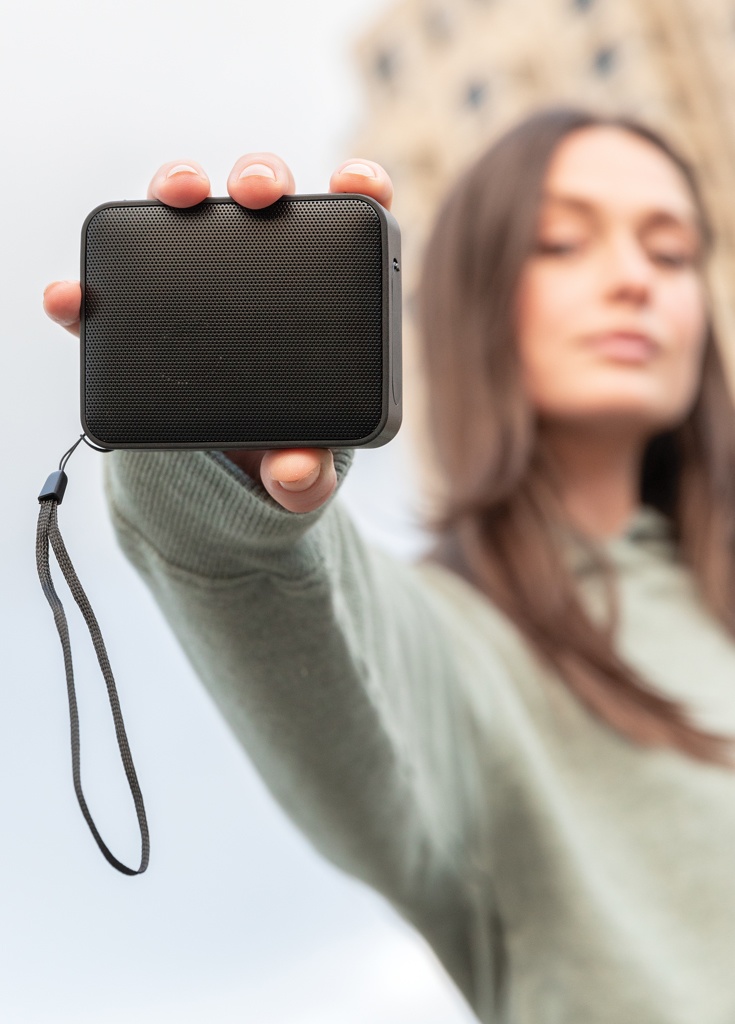 Kišeninis dydis ir galingas 3 W belaidis garsiakalbis, pagamintas iš RCS (Recycled Claim Standard) sertifikuoto perdirbto ABS Bendras perdirbtas kiekis: 49 % pagal bendrą prekės svorį. RCS sertifikatas užtikrina visiškai sertifikuotą perdirbtų medžiagų tiekimo grandinę. Šis nuostabus garsiakalbis turi IPX 7, todėl gali atlaikyti bet kokį vandenį ir puikiai tinka paplūdimyje ar baseine. Garsiakalbis naudoja BT5.1, kuris leidžia žaisti iki 6 valandų. „Urban Vitamin“ gaminiai gaminami be PVC ir supakuoti į sumažintas plastikines pakuotes. Įskaitant C tipo įkrovimo laidą, pagamintą iš RCS sertifikuoto perdirbto TPE.