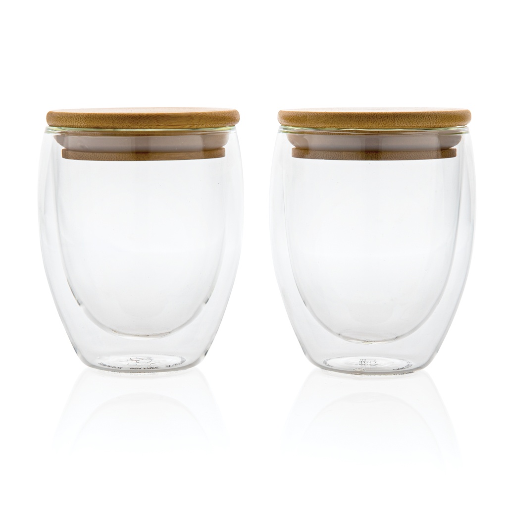Logotrade biznesa dāvanas foto: Divsienu borsilikāta stikls ar bambusa vāku 250ml 2gab komplekts