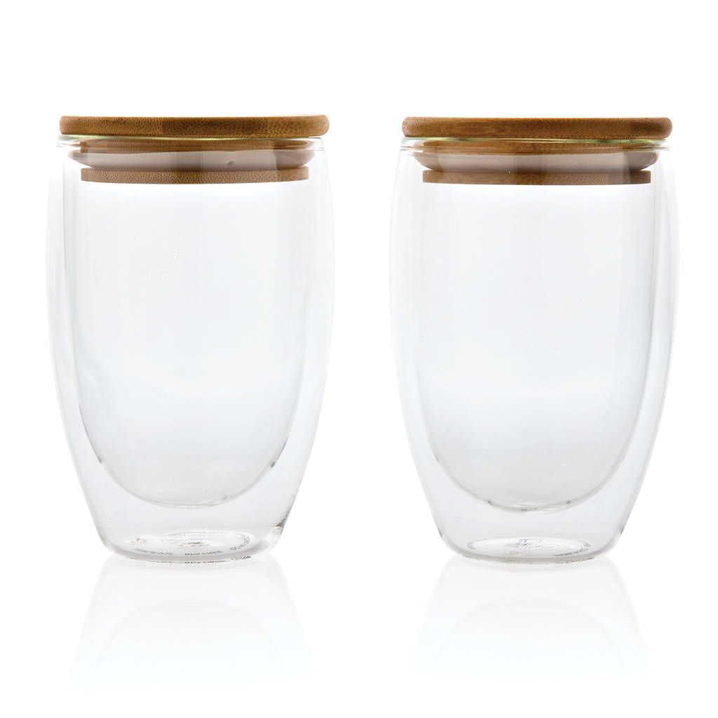 Products Ilgtspējīgi reklāmas produkti Divsienu borsilikāta stikls ar bambusa vāku 350ml 2gab komplekts