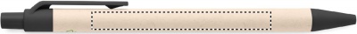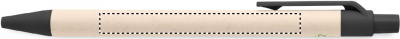 Spiedpogas lodīšu pildspalva ar otrreizējās pārstrādes piena kastītes mucu (70% pārstrādāta piena kastītes un 30% pārstrādāta papīra) un PLA detaļām (100% bioloģiski noārdāmā kukurūzā). Zilā tinte.