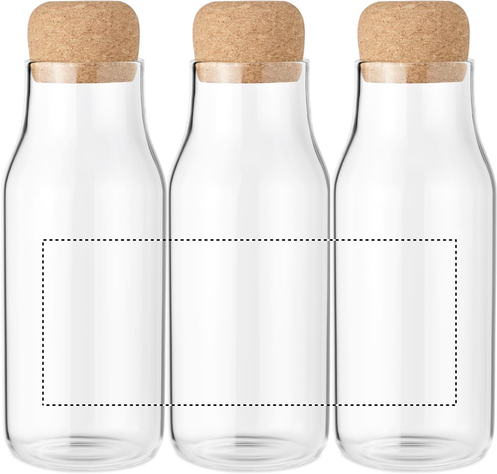 Borsilikāta stikla pudele ar korķa vāku. Tilpums: 600 ml. Korķis ir 100% dabīgs materiāls. Tā strukturālā rakstura un virsmas porainības dēļ gala izdrukas rezultātam uz vienu vienumu var būt novirzes.