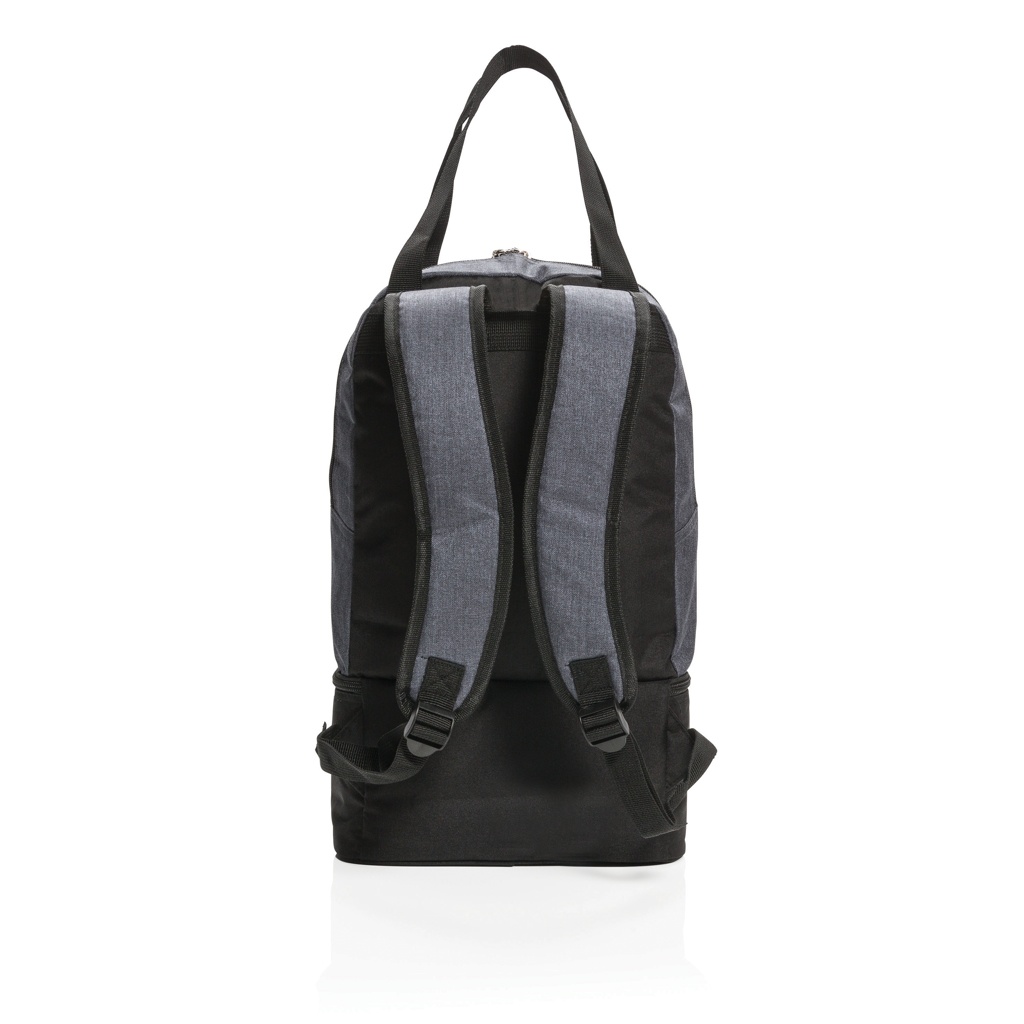 Этот двухцветный рюкзак из полиэстера 500D имеет основное отделение для пляжных принадлежностей и нижнее отделение-холодильник с местом для 8 банок. Легко трансформируется в сумку-тоут с помощью ремней.