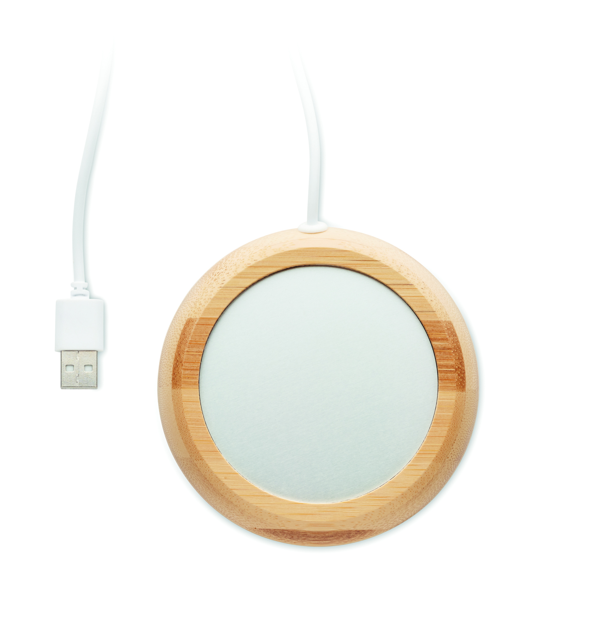 Mug warmer device in bamboo. Keep drinks warm to a max of 45ºC. It has a USB connection cable.
