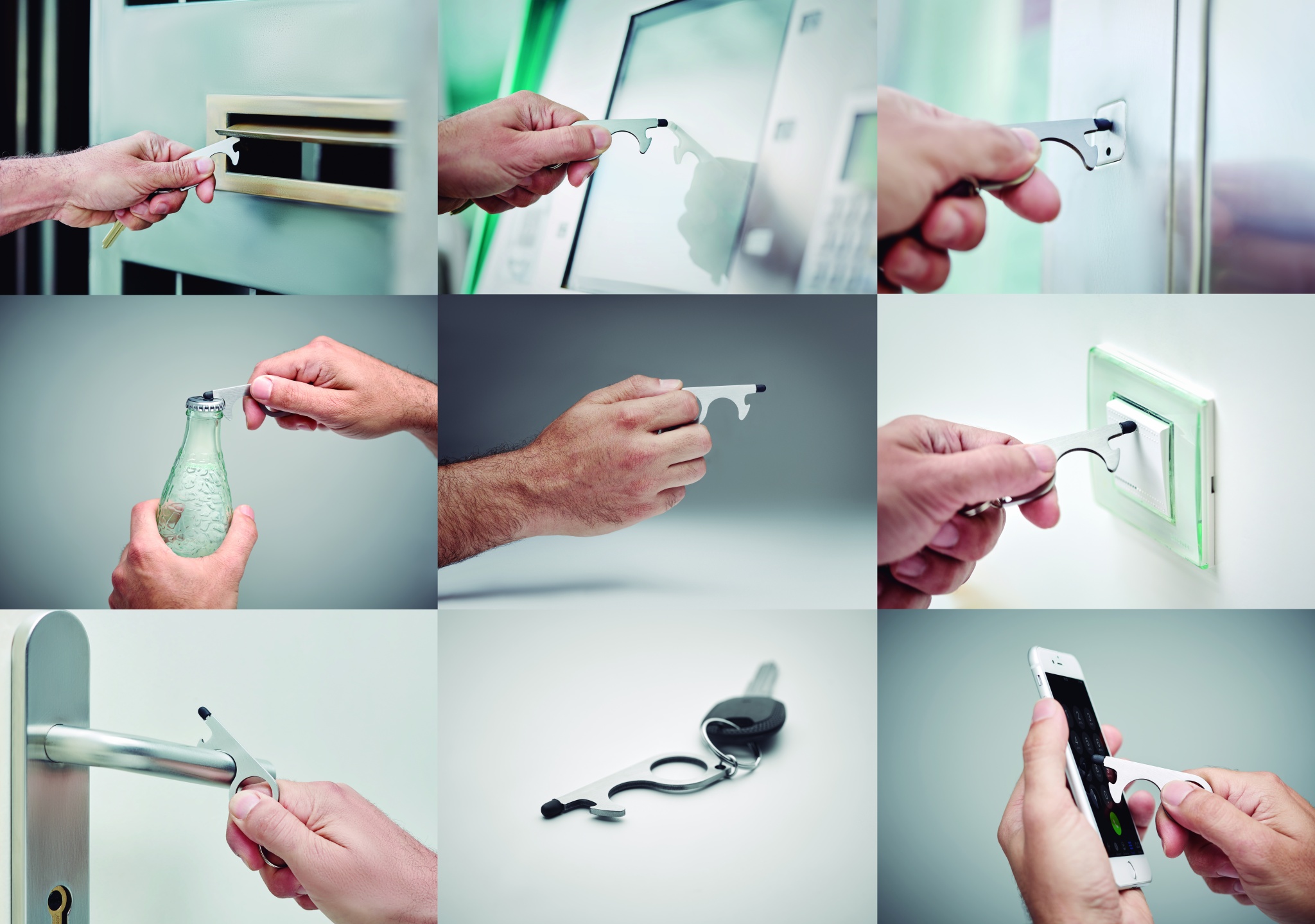 Многофункциональный бесконтактный брелок 5-в-1. Нажимайте кнопки лифтов, светофоров, банкоматов и мобильных устройств, не касаясь их. Включает открывалку для бутылок, стилус и брелок. Простой способ предотвратить распространение микробов.