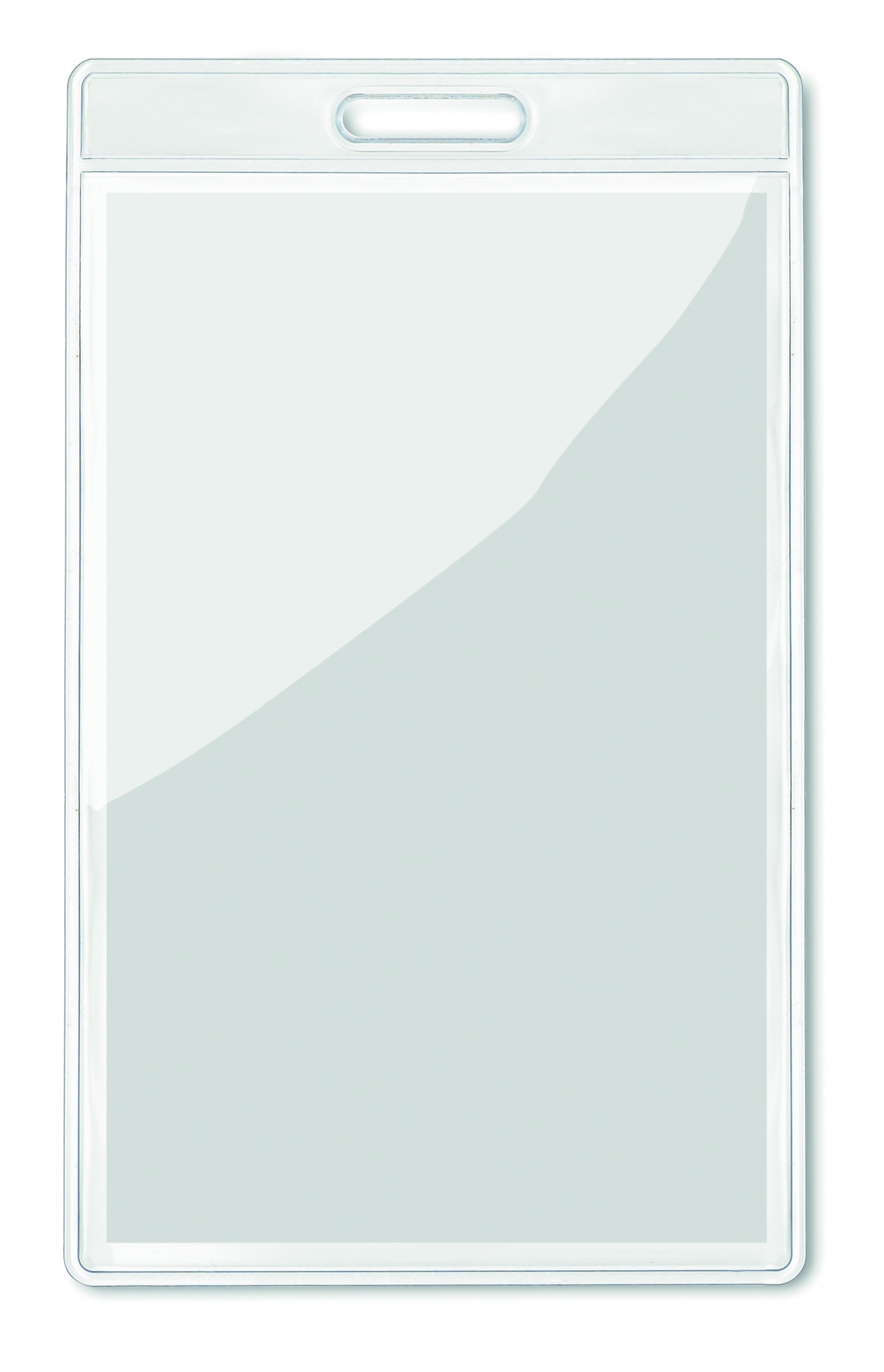 Прозрачный бейдж размером 7,5х12,5 см.
