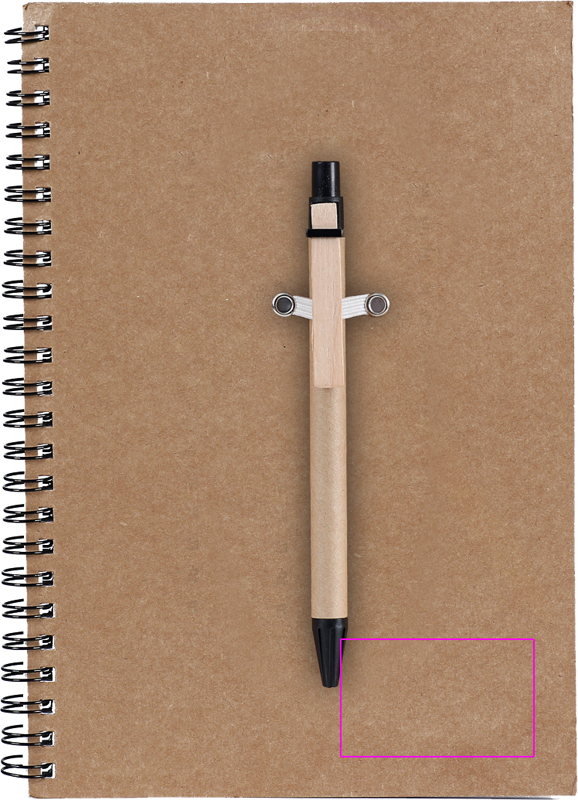 Блокнот формата А5 из переработанного картона и бумаги с 120 линованными страницами и шариковой ручкой с синими чернилами из переработанного картона. Мы напечатаем ваш логотип на обложке.