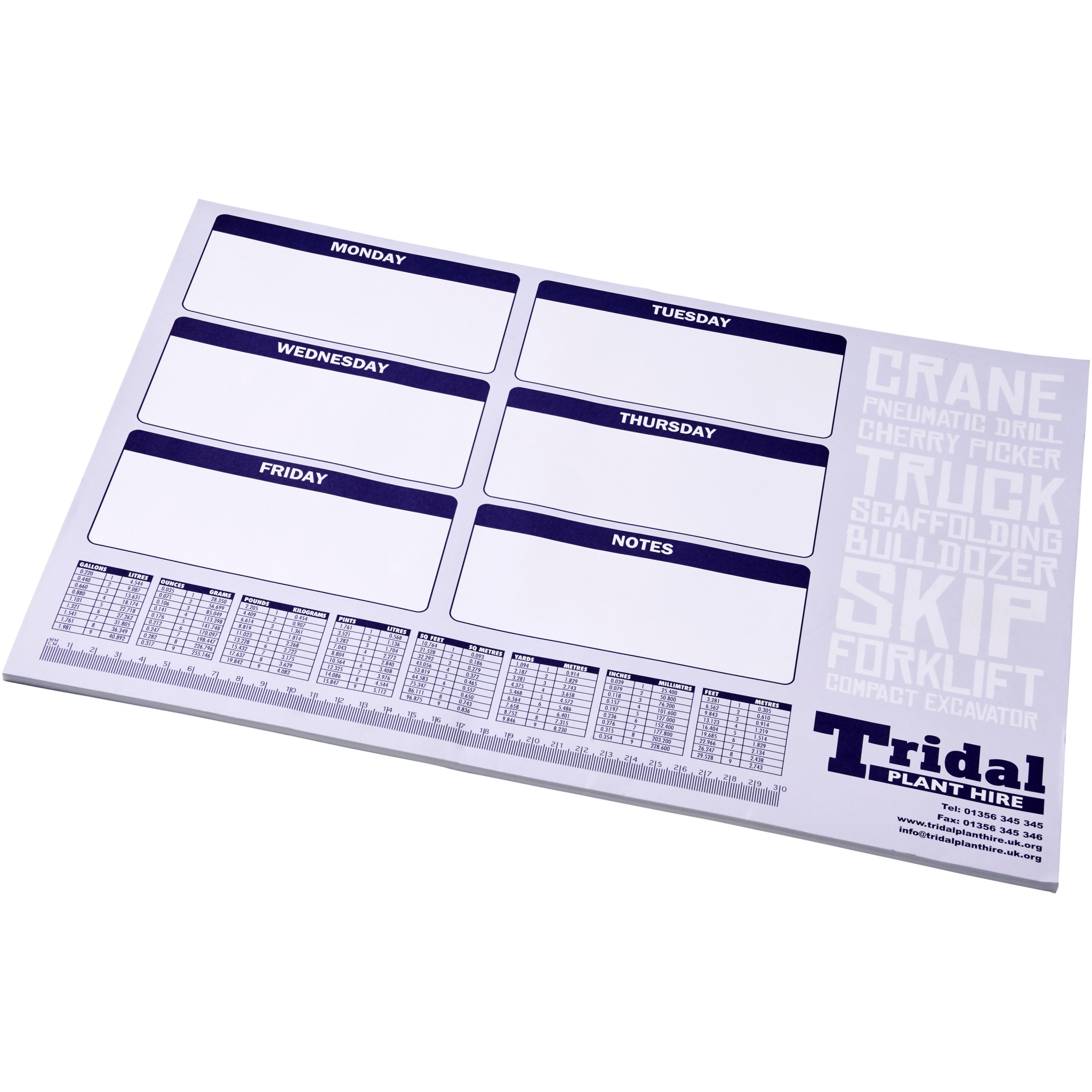 Белый блокнот Desk-Mate® формата А2. Состоит из чистых листов 80 г/м². Стандартный вариант состоит из 50 листов, а также доступно по 25 листов. На каждый лист можно нанести рисунок. Размеры листа: 594x420 мм.