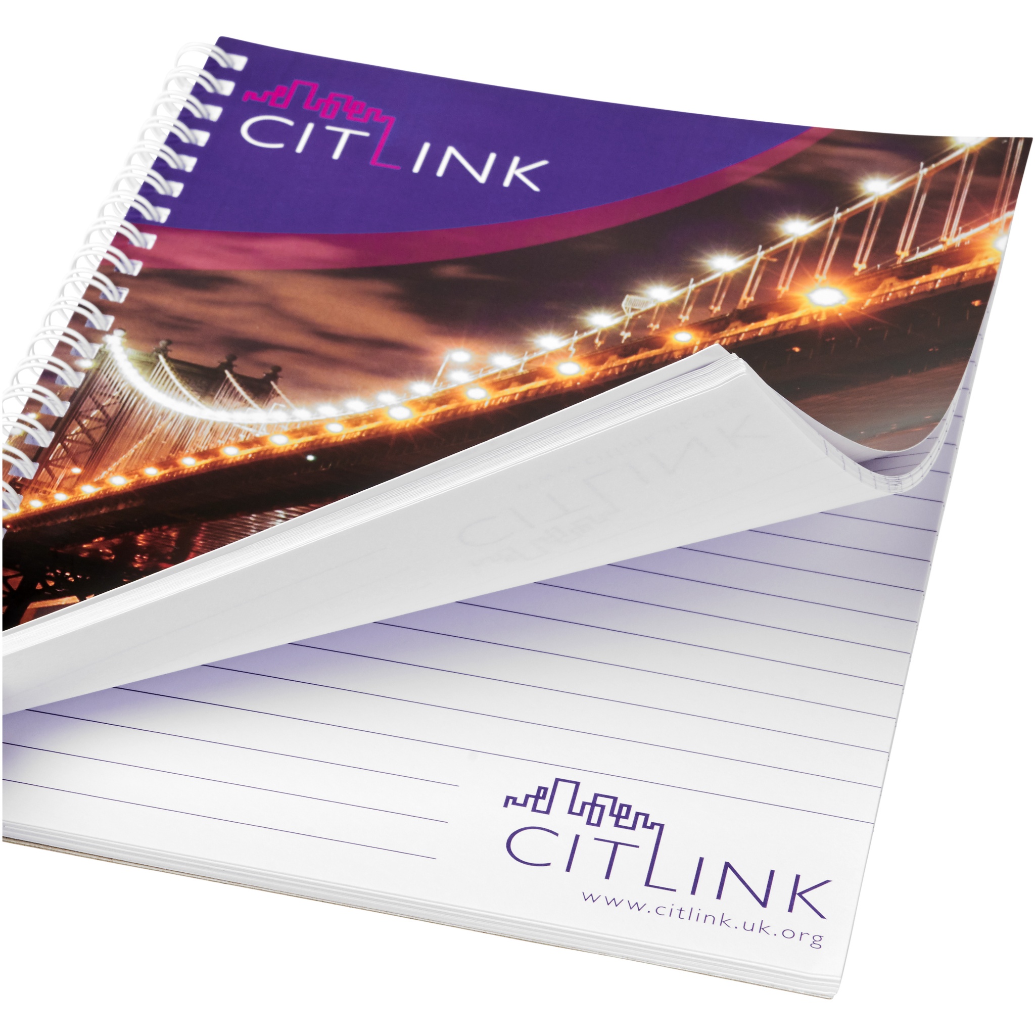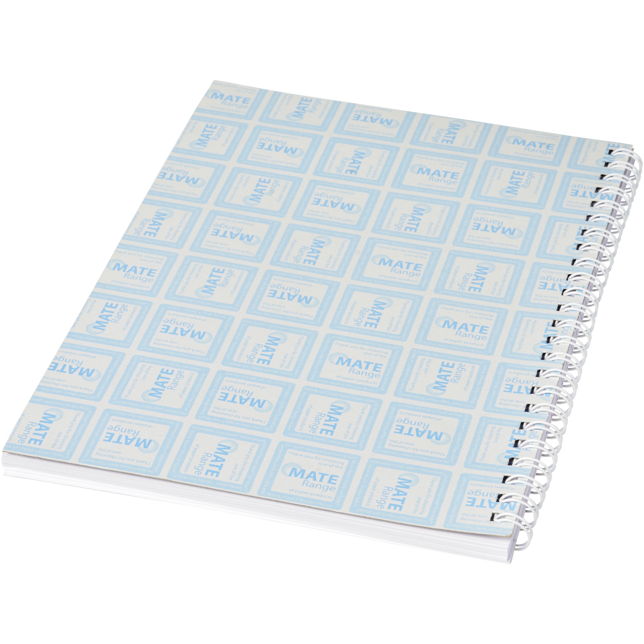 Блокнот Desk-Mate® формата A4 на спирали. Этот блокнот скреплен белой или черной спиралью. Доступен в различных размерах. Имеет глянцевую картонную обложку (250 г/м²) и состоит из чистых листов бумаги (80 г/м²). Стандартный вариант состоит из 50 листов, а также доступно по 80 листов. На обложку и каждый лист можно нанести рисунок.