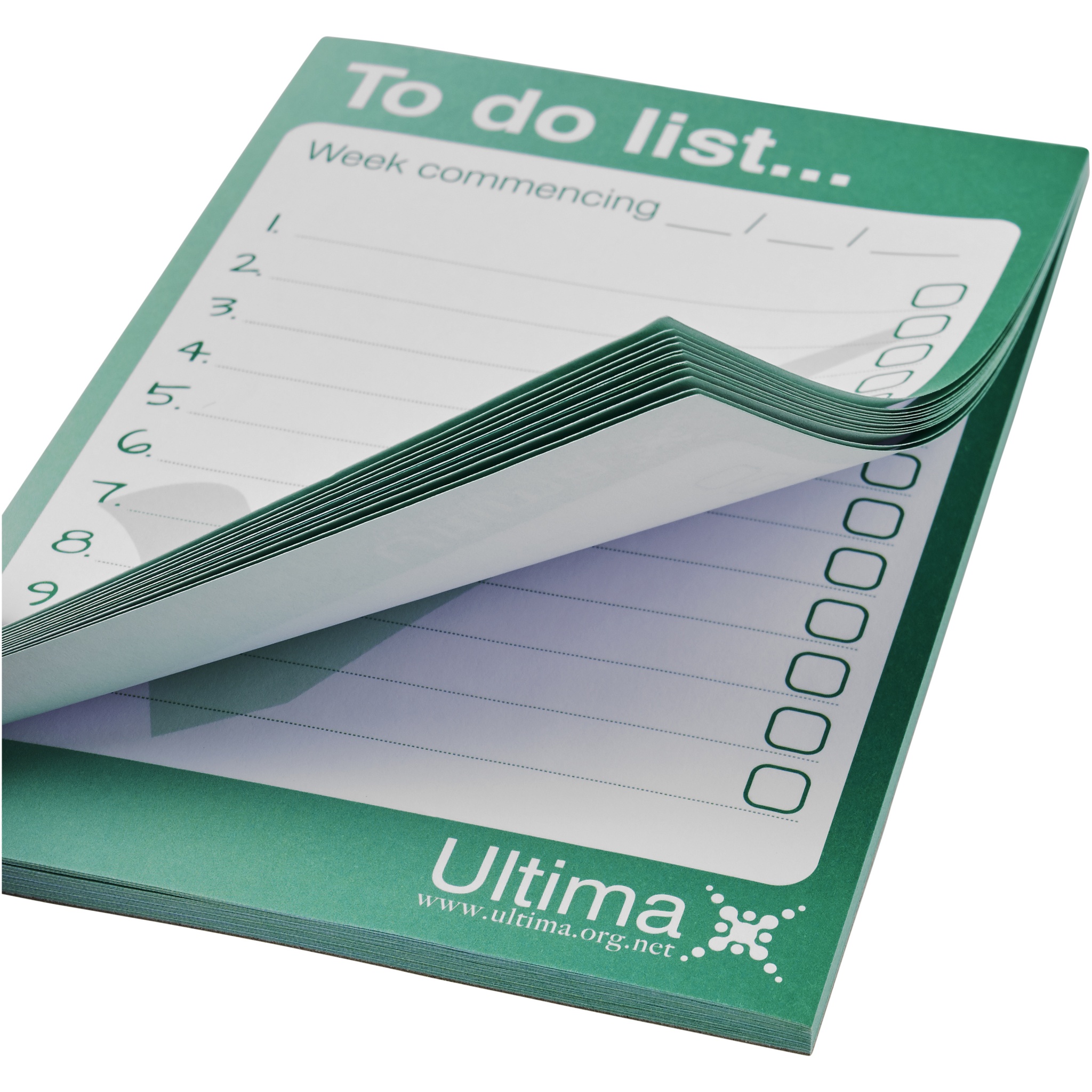 Белый блокнот Desk-Mate® формата А6. Состоит из чистых листов 80 г/м². Стандартный вариант состоит из 50 листов, а также доступно по 25 и 100 листов. На каждый лист можно нанести рисунок. Размеры листа: 105x148мм.