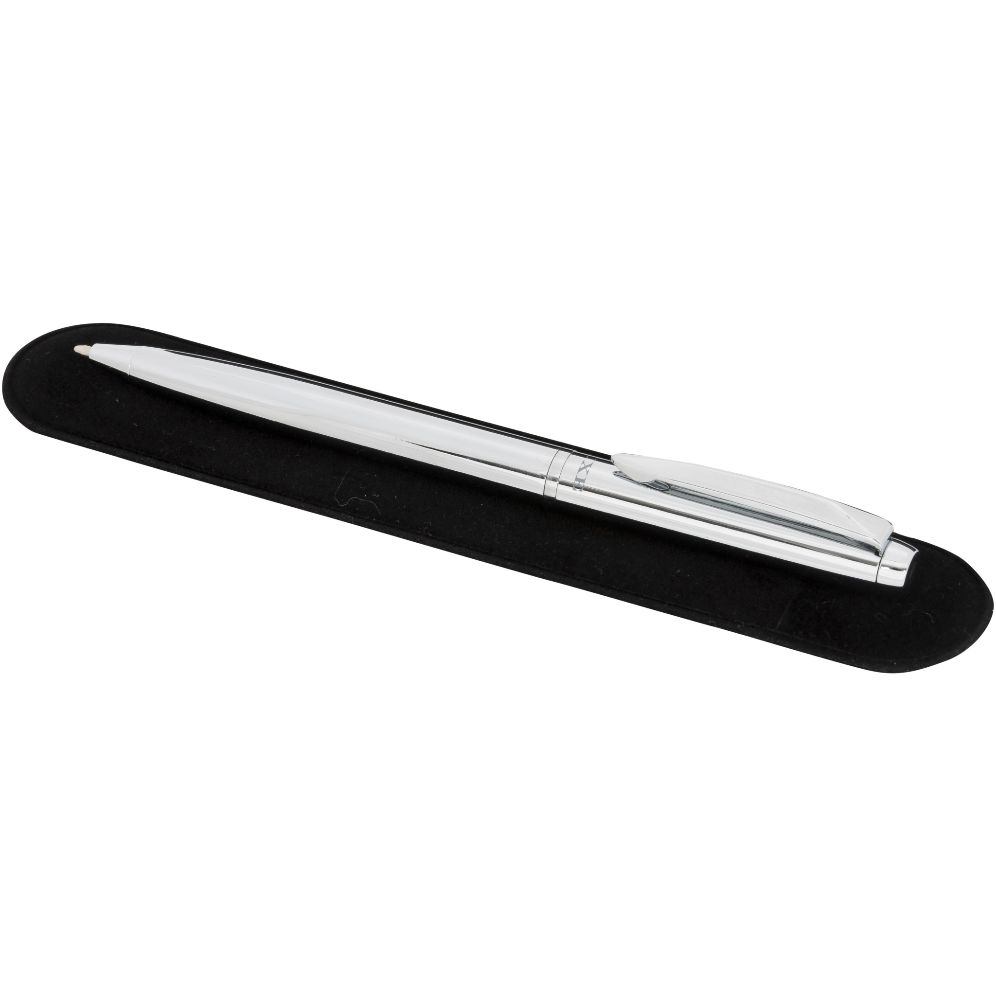 Эксклюзивная шариковая ручка с блестящими хромированными вставками. В набор входит запасной черный стержень премиум-класса. Предлагается в подарочной коробке LUXE (15 x 3,5 x 2 см).