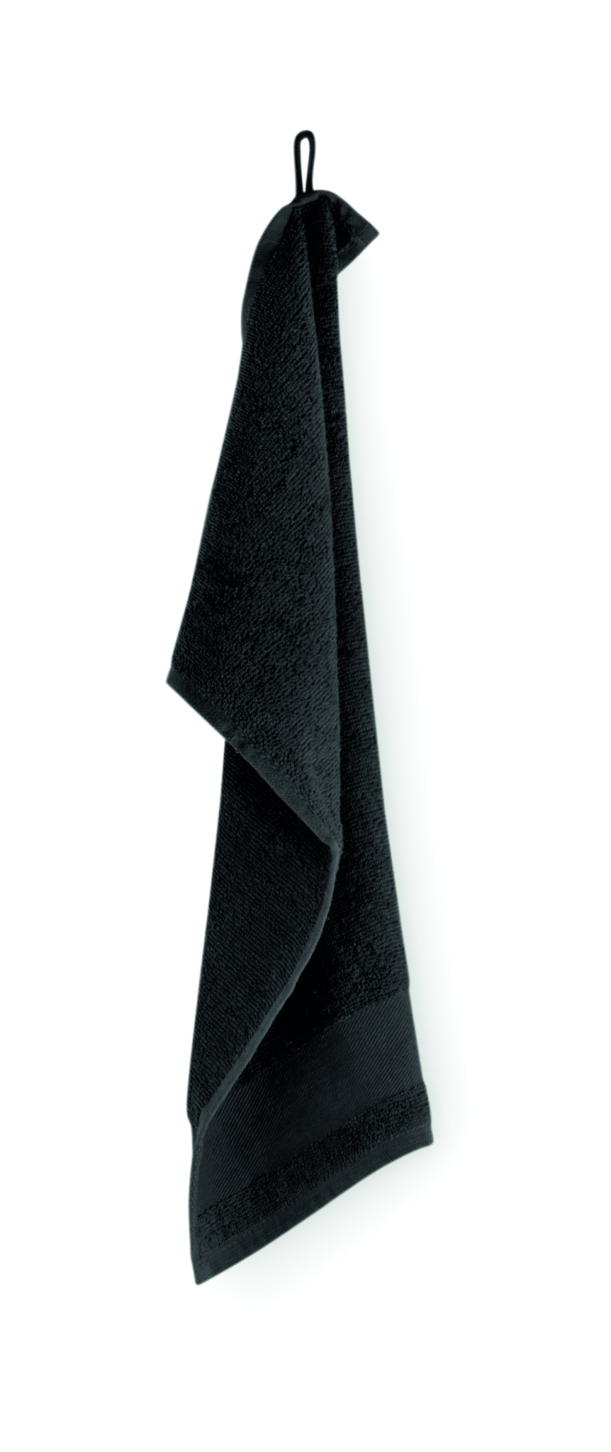 Guest towel made of 100% cotton, 380 gr/m² fabric with cotton hanger loop. Soft and absorbent design. Size 30 cm x 50 cm.